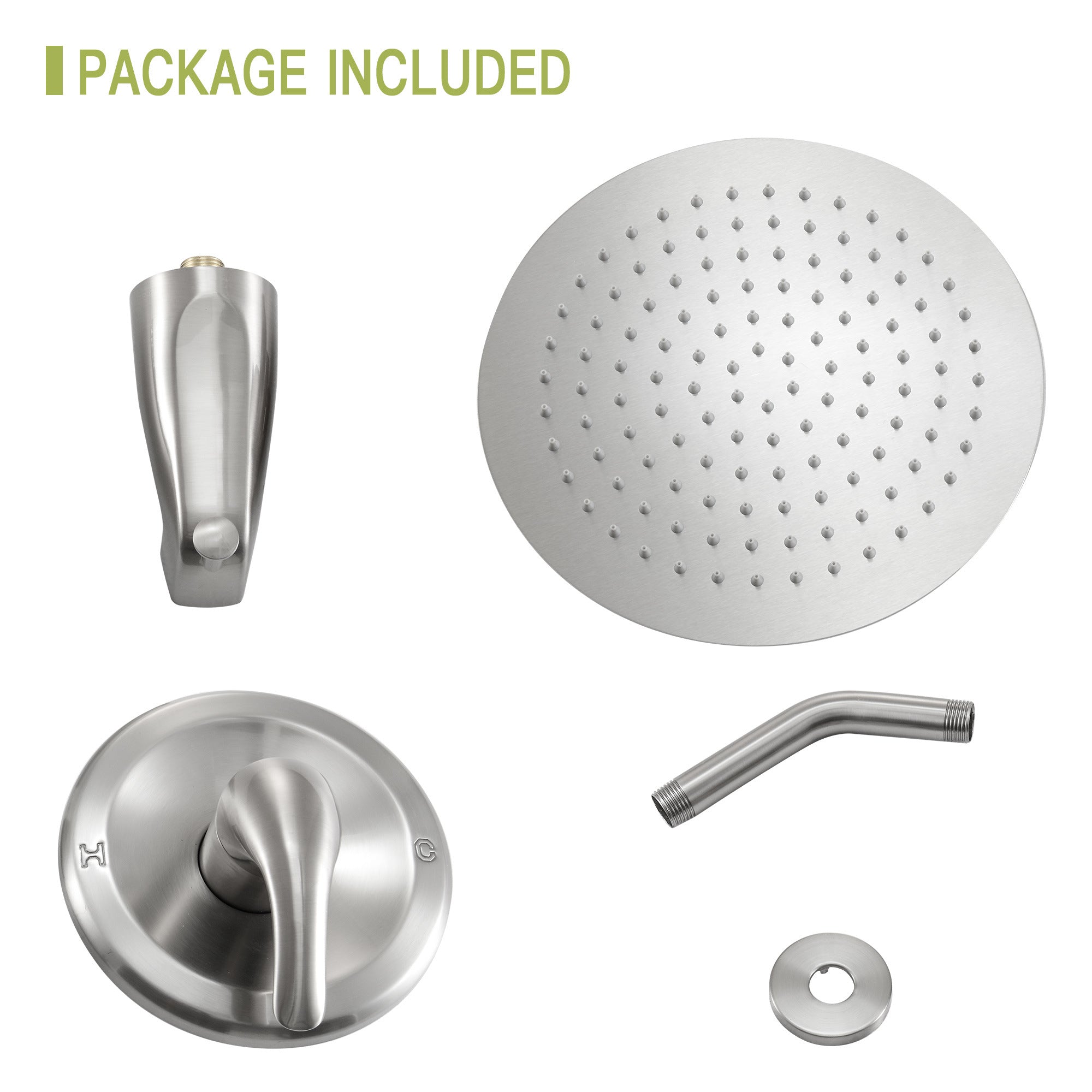 {Included Components}10 inch Round rain shower head,Shower Arm,tub spout,water control valve,Parts and installation instructions.
