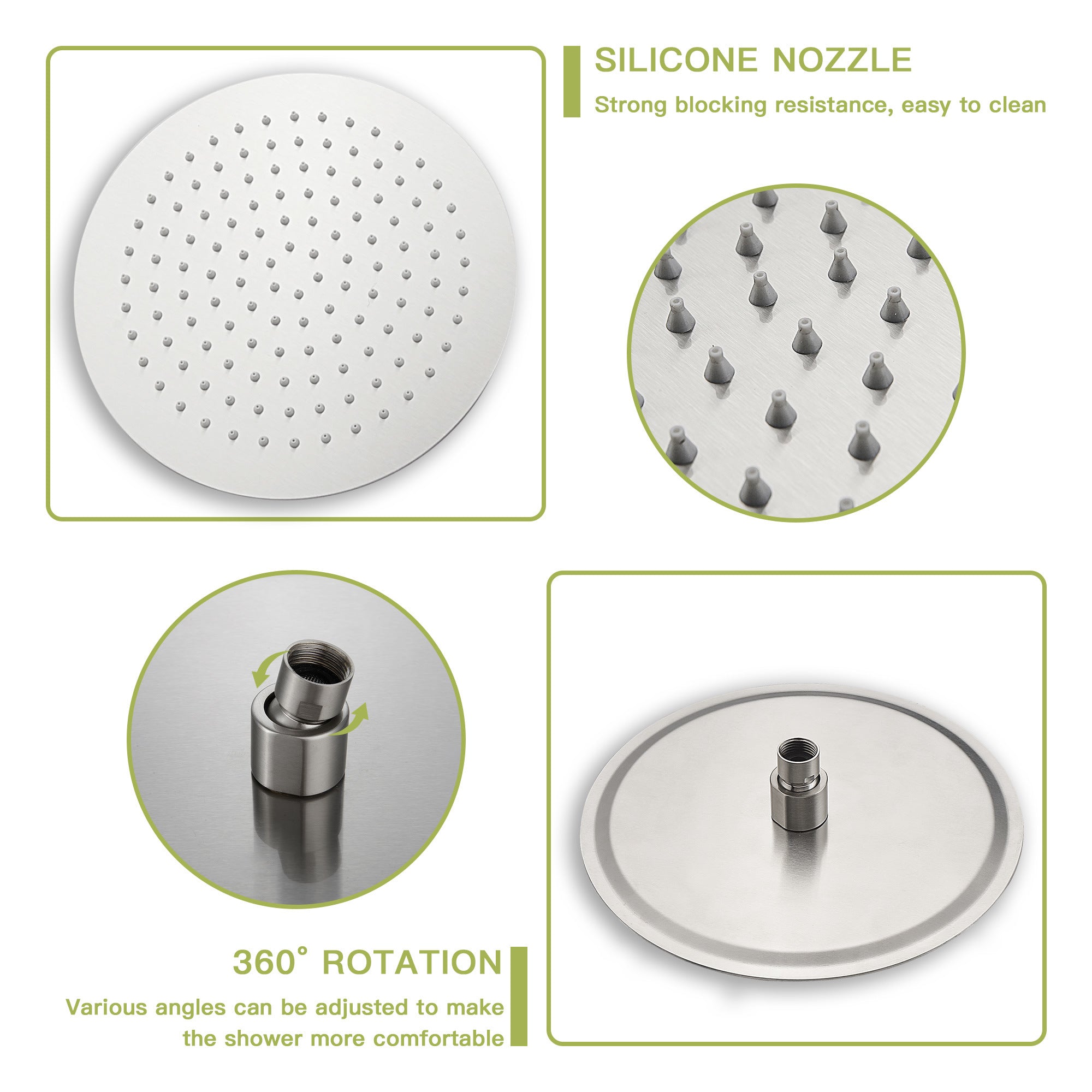 {Rainfall Shower Head}Our ultra-thin overhead rainfall shower head offers extensive coverage, providing a soothing downpour shower experience with 360° adjustability.