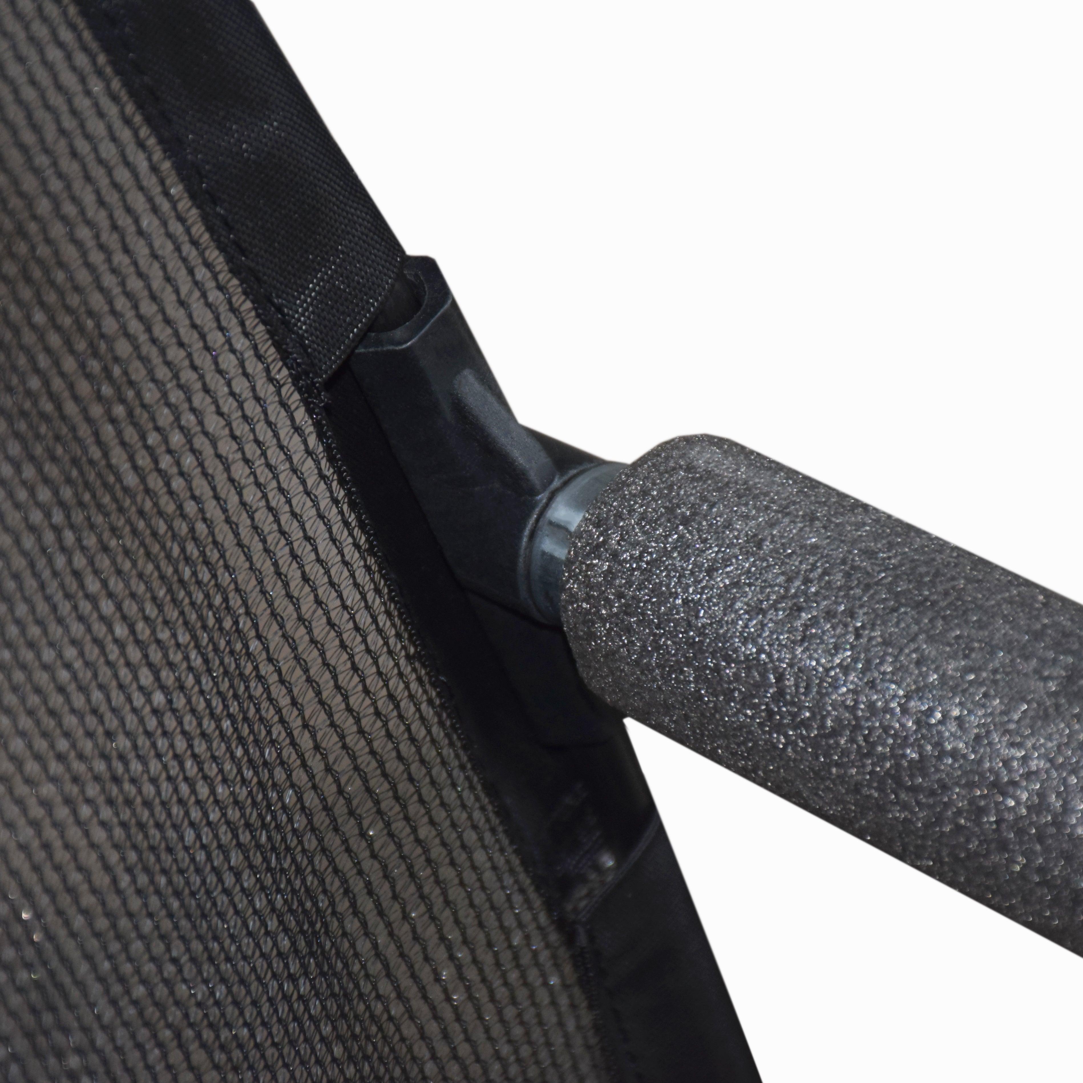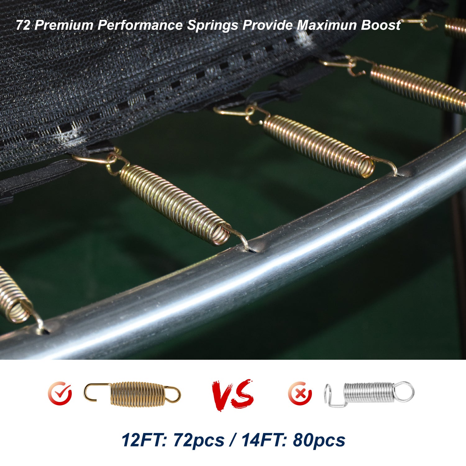 (PRODUCT UPGRADE)We have upgraded the product so that the trampoline has a longer product life.The frame is made of galvanized steel pipe,also we add the protection of black powder coating in leg pipe to prevent rust.4pcs legs with 8pcs balanced contact points for better stability and safety.PVC Spring Cover Padding is waterproof.88pcs springs can bear 330lb weight.And added plastic-steps ladder for kids to up and down stairs.