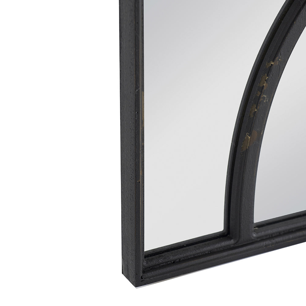 This set of two carved accent mirrors is sure to capture the gaze of your guests with their intricate curved motifs and distressed black finish. Whether they are displayed as a pairing or separated, the unmatched blend of modern and rustic charms will embellish the decor in your entryway, living room, foyer, or bedroom.
