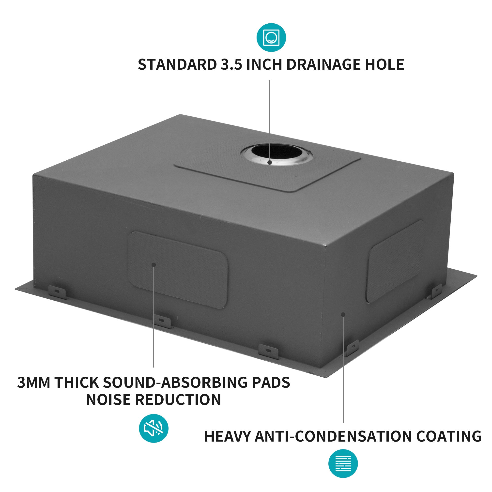 [Coating and Silencer Pad]There is a thick coating on the outside of the sink to prevent condensation caused by weather changes. In addition, the 3mm thick rubber silencer pad can greatly reduce the noise from the faucet and give you a quieter cooking environment.
