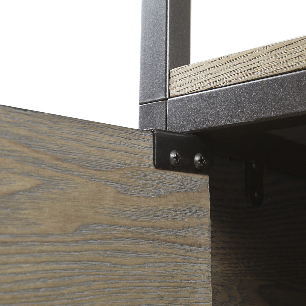 Display your books or curios in your living room or home office with the Madison Park Darley Bookcase. Able to easily fit into smaller spaces, this bookshelf features 3 solid wood veneer shelves that offer plenty of room for your decorative objects. A lower storage cabinet with a metal handle provides another place to store books and trinkets. Made with a sturdy metal frame, this storage bookcase brings additional storage and charming transitional style to your home decor. Assembly is required and tools are included.