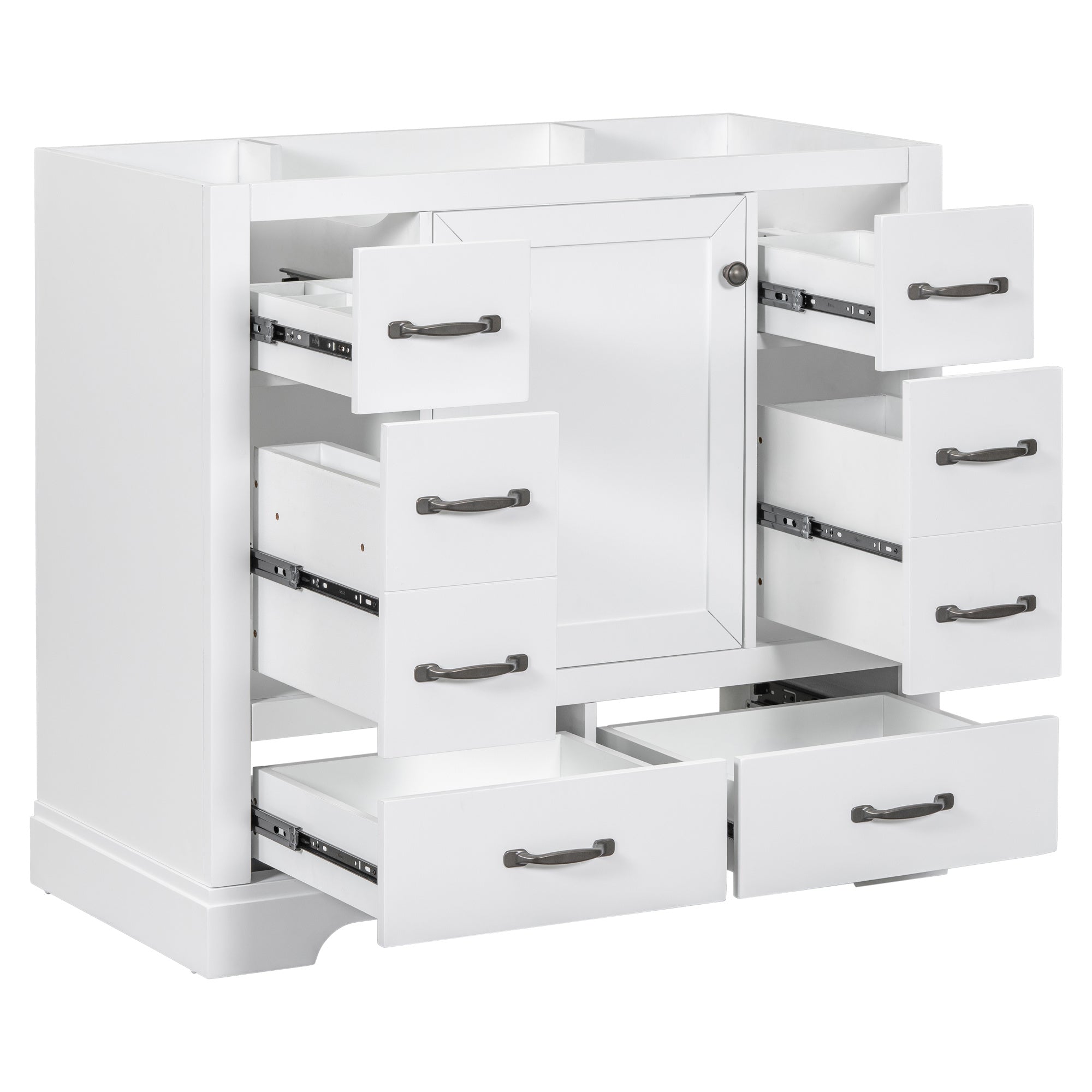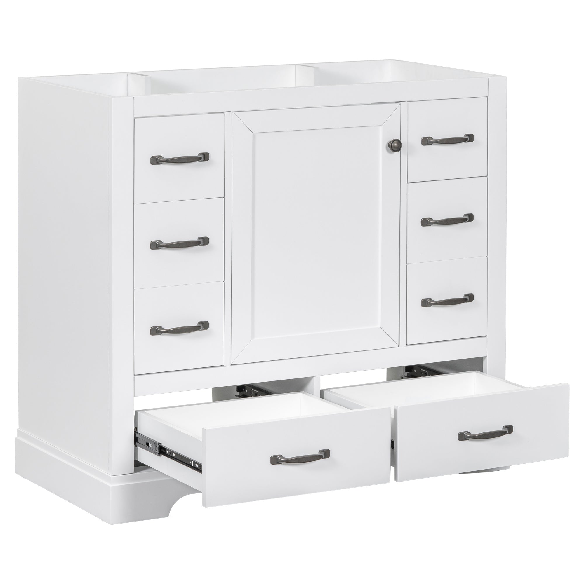 Storage Space: This bathroom vanity has ample enclosed storage spaces: one cabinet with an adjustable shelf inside, and three drawers with slide rails each side. You can put soaps, towels, shampoos, tissue paper and other bathroom essentials in it so to keep them away from dust.