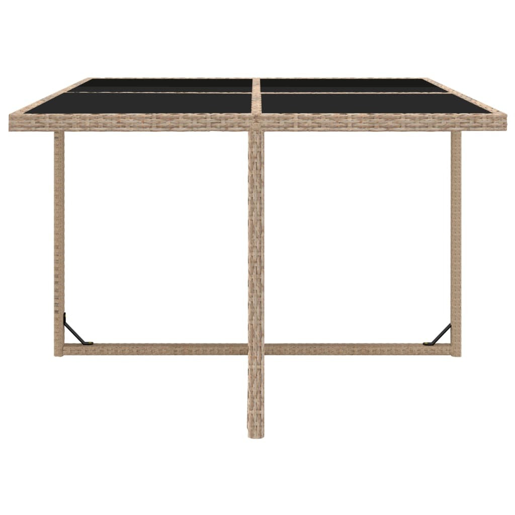 The garden furniture set features a sturdy powder-coated steel frame, making it very stable and durable. Thanks to the water-resistant PE rattan, the dining set is easy to clean, hardwearing and suitable for daily outdoor use. The glass tabletop is also easy to clean with a damp cloth. The thick, soft, foam-filled seat and back cushions are highly comfortable. The low-maintenance polyester cushion covers can be easily removed and washed. The whole garden dining set is easy to assemble.