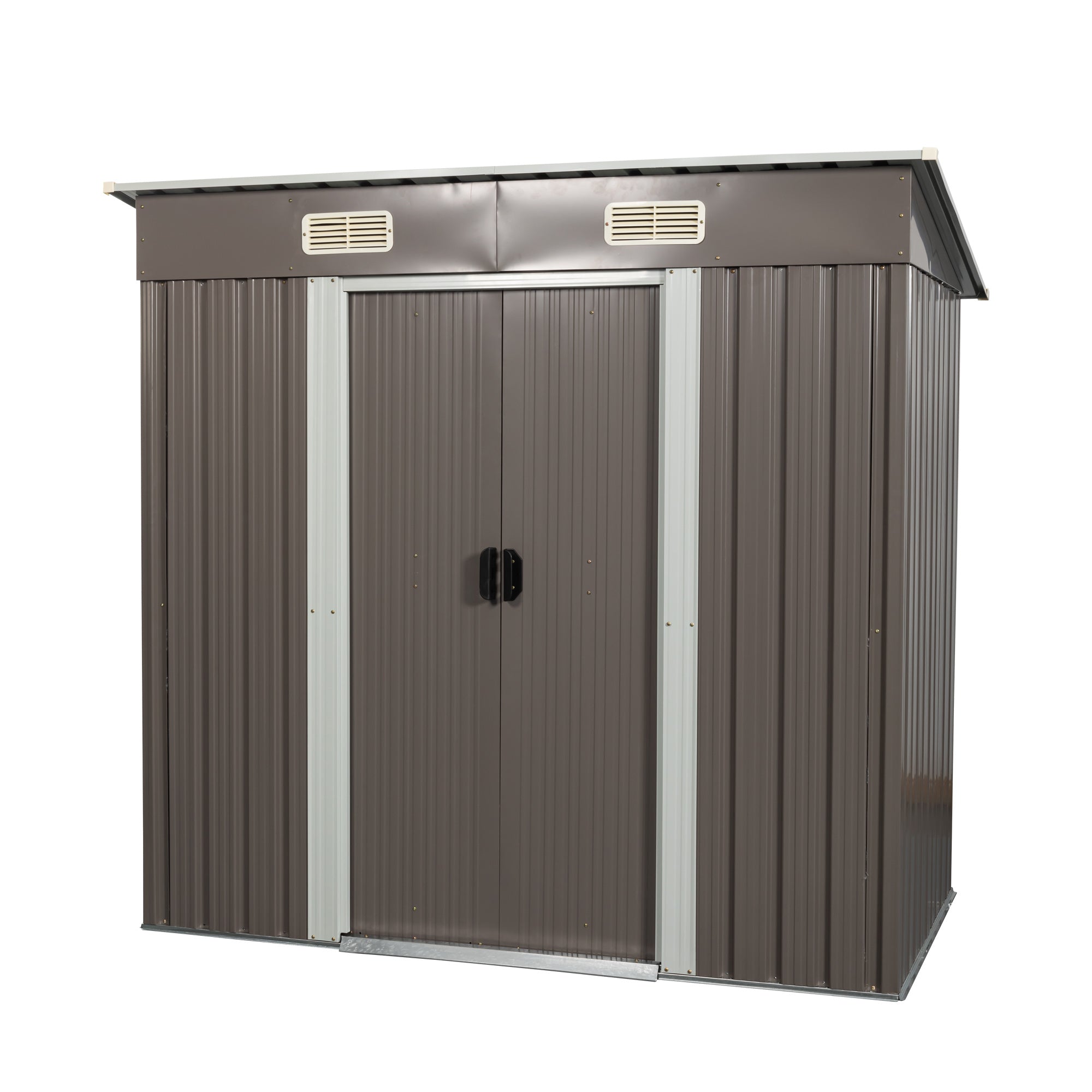 [Free Giving] Metal Foundation,Anchors,Hooks,Shelf,Locker(padlock),Gloves Easy-build shed made of Electro Galvanized Steel treated for strong corrosion resistance. UV resistant steel panels protect against rot, insects, and extreme weather conditions.