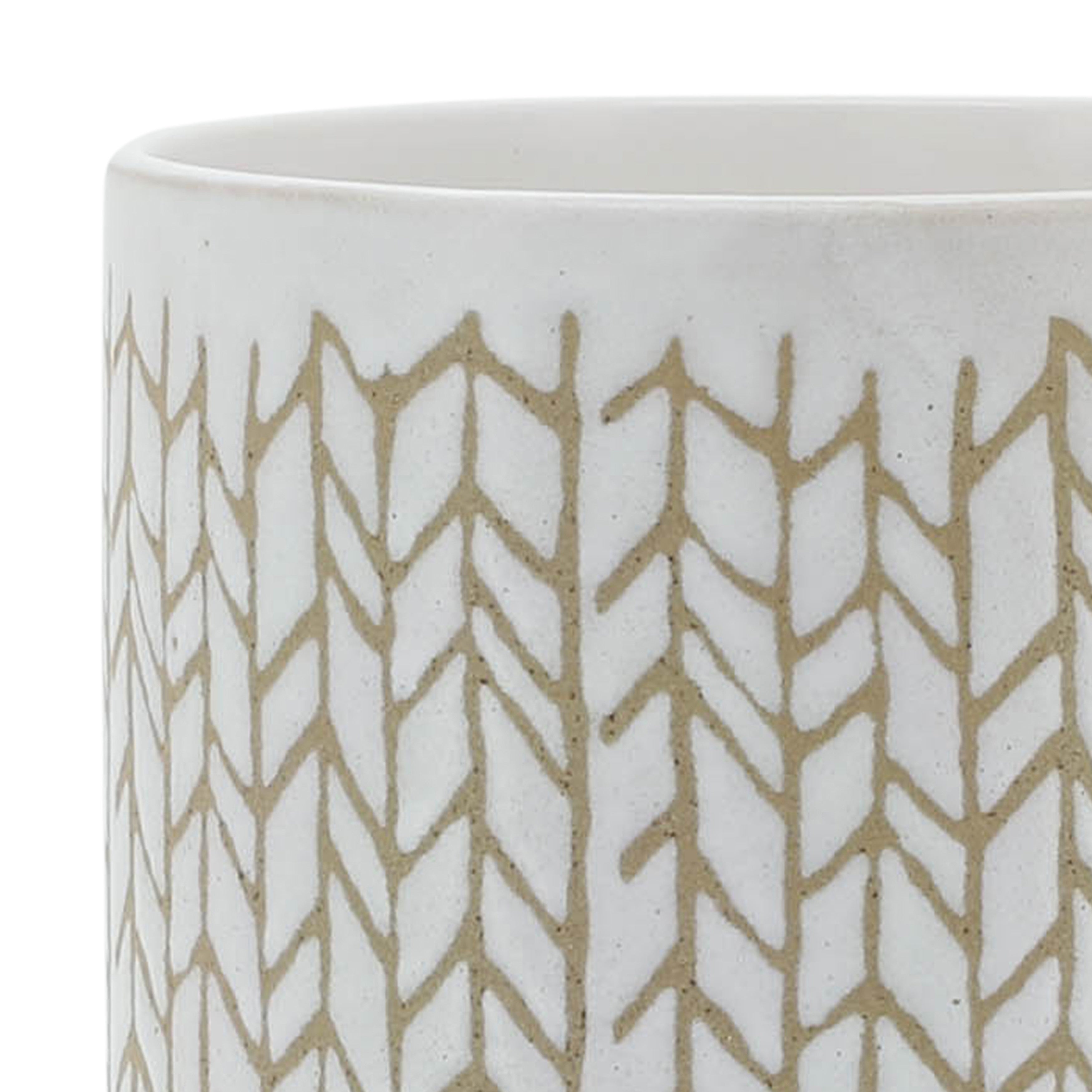 8" Chevron Planter with wood stand, Beige. Made of ceramic with a Chevron Pattern. Crème base with a beige pattern. The Chevron pattern creates more depth and dimension. Planter does not have drainage holes. The perfect planter for planting succulents, terrariums, and indoor house plants.Sagebrook Home has been formed from a love of design, a commitment to service and a dedication to quality. They create and import fashion forward items in the most popular design styles. Backed with years of experience in the textile field, They are now providing a complete Home decor story. the combination of wall decor, furniture, lighting and Home accessories are all coordinated with textiles to provide a complete Home look. Sagebrook Home is committed to providing the best Home decor and accent pieces at value prices.