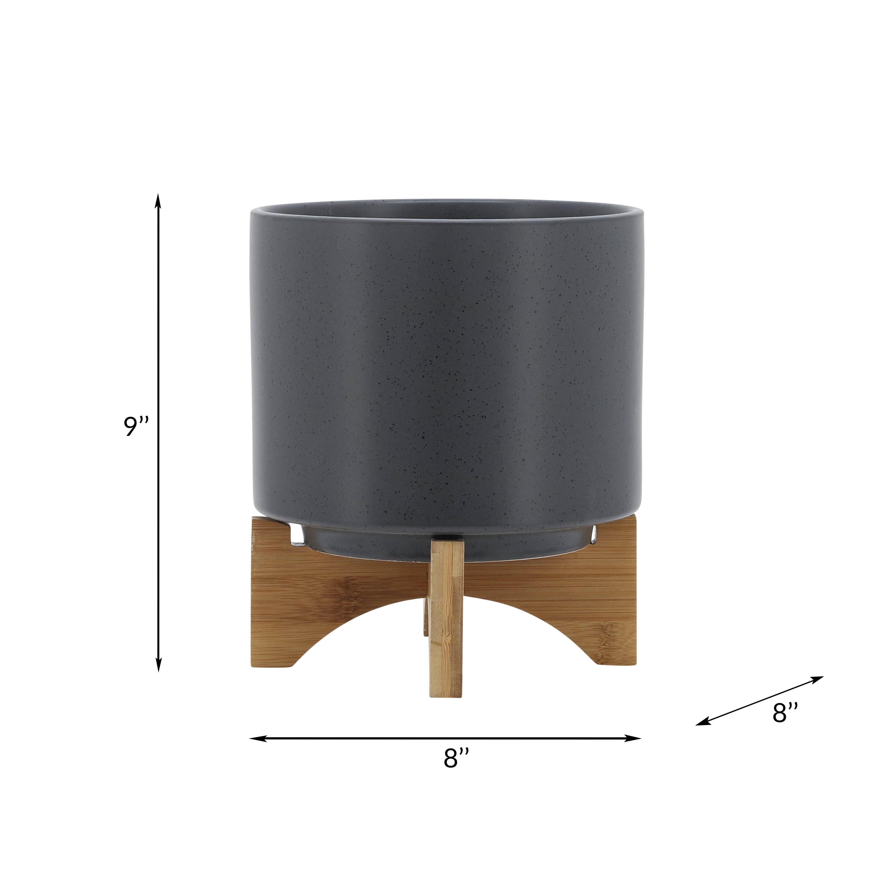 8" Planter with wood stand, Matte Gray. Beautiful Ceramic planter, black speckles on planter. Bottom of planter has a rubber wood coaster.Sagebrook Home has been formed from a love of design, a commitment to service and a dedication to quality. They create and import fashion forward items in the most popular design styles. Backed with years of experience in the textile field, They are now providing a complete Home decor story. the combination of wall decor, furniture, lighting and Home accessories are all coordinated with textiles to provide a complete Home look. Sagebrook Home is committed to providing the best Home decor and accent pieces at value prices.