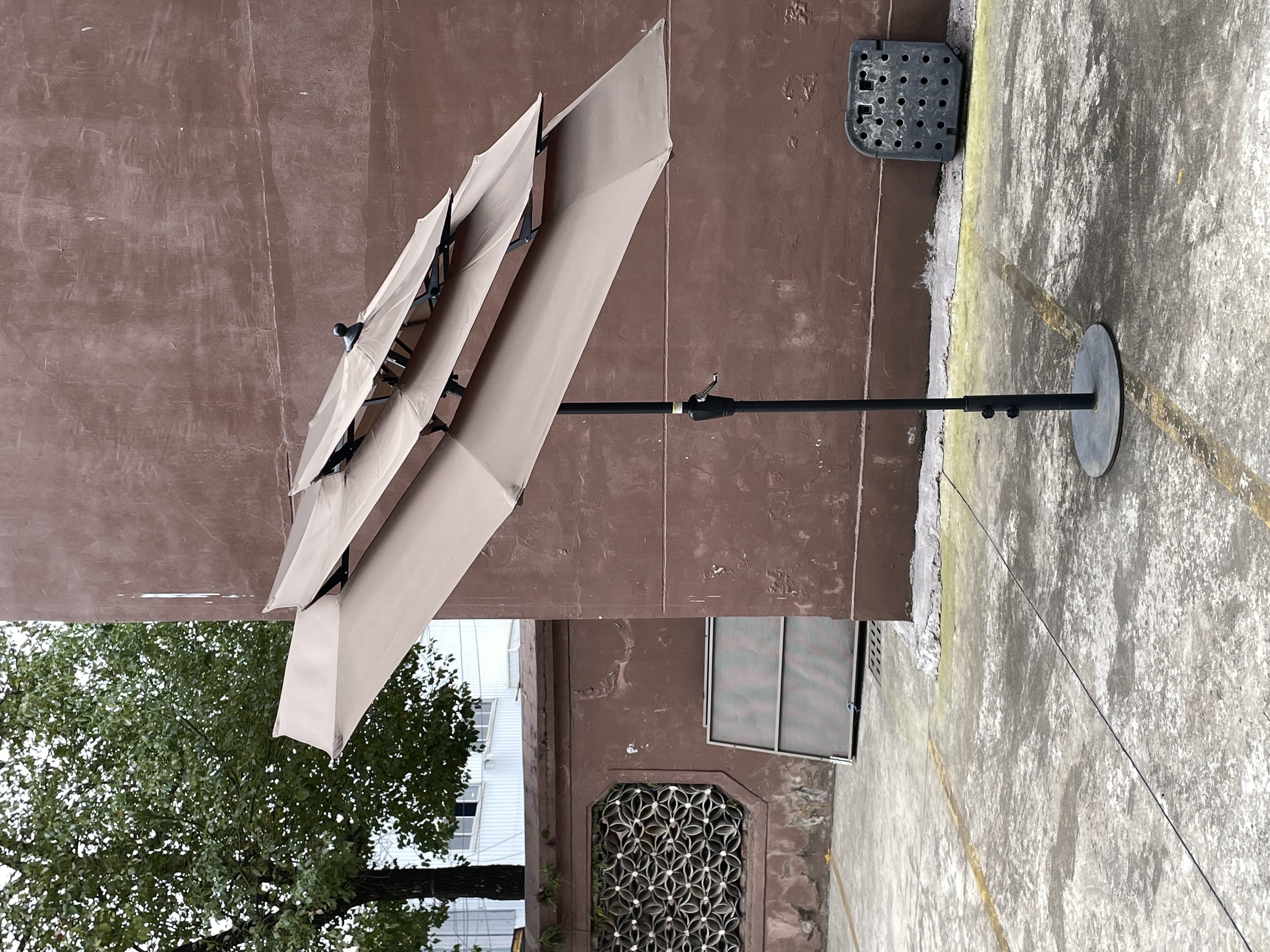 Finished with a crank lift, 3 tiers patio umbrella can be easy to open and close by crank, making it the ideal go-to item when the sun comes out to shine. The push-button tilt technology also makes tilting the patio umbrella effortless for maximum shade. So It is ideal for you to shade and rain protection(base is not included).