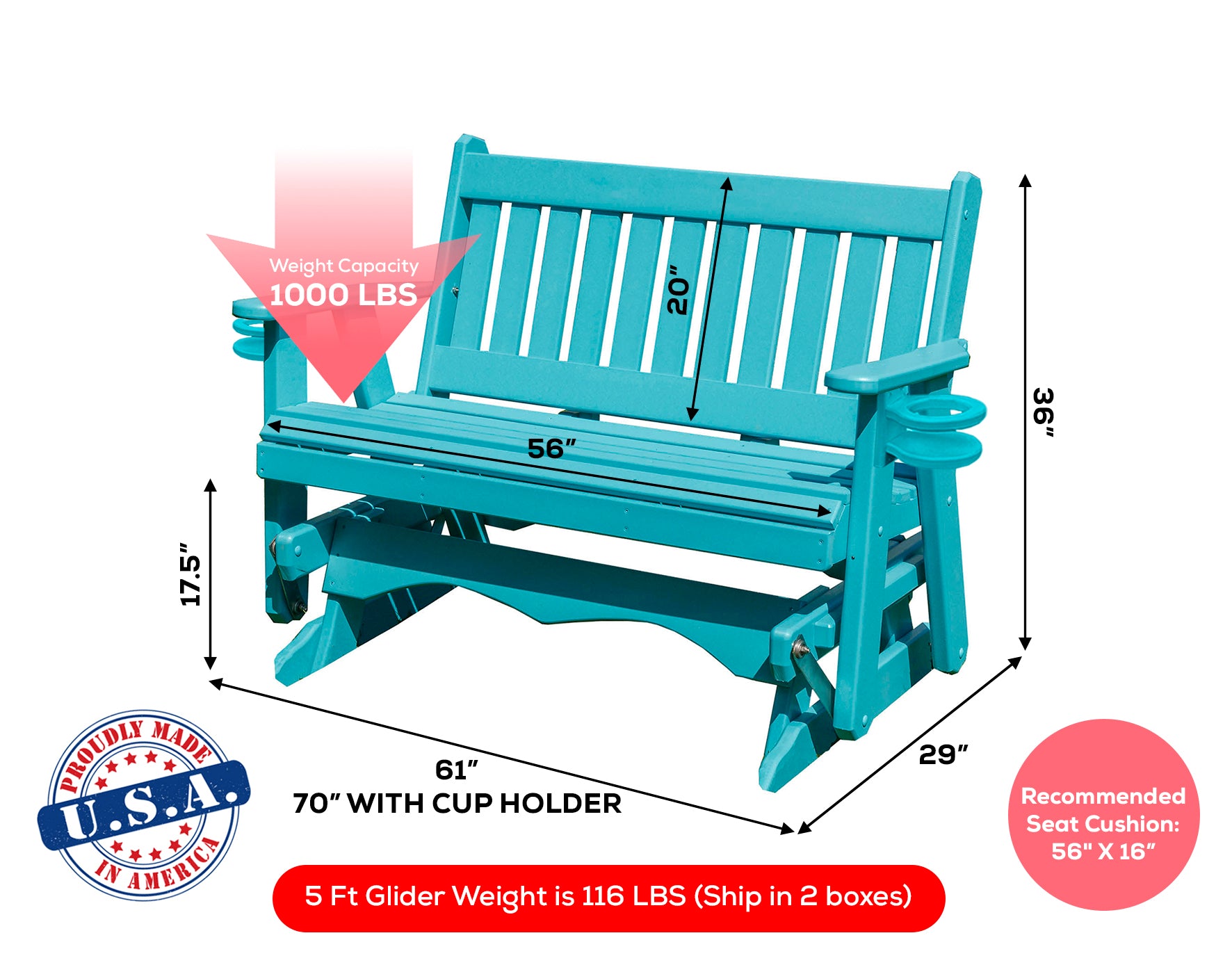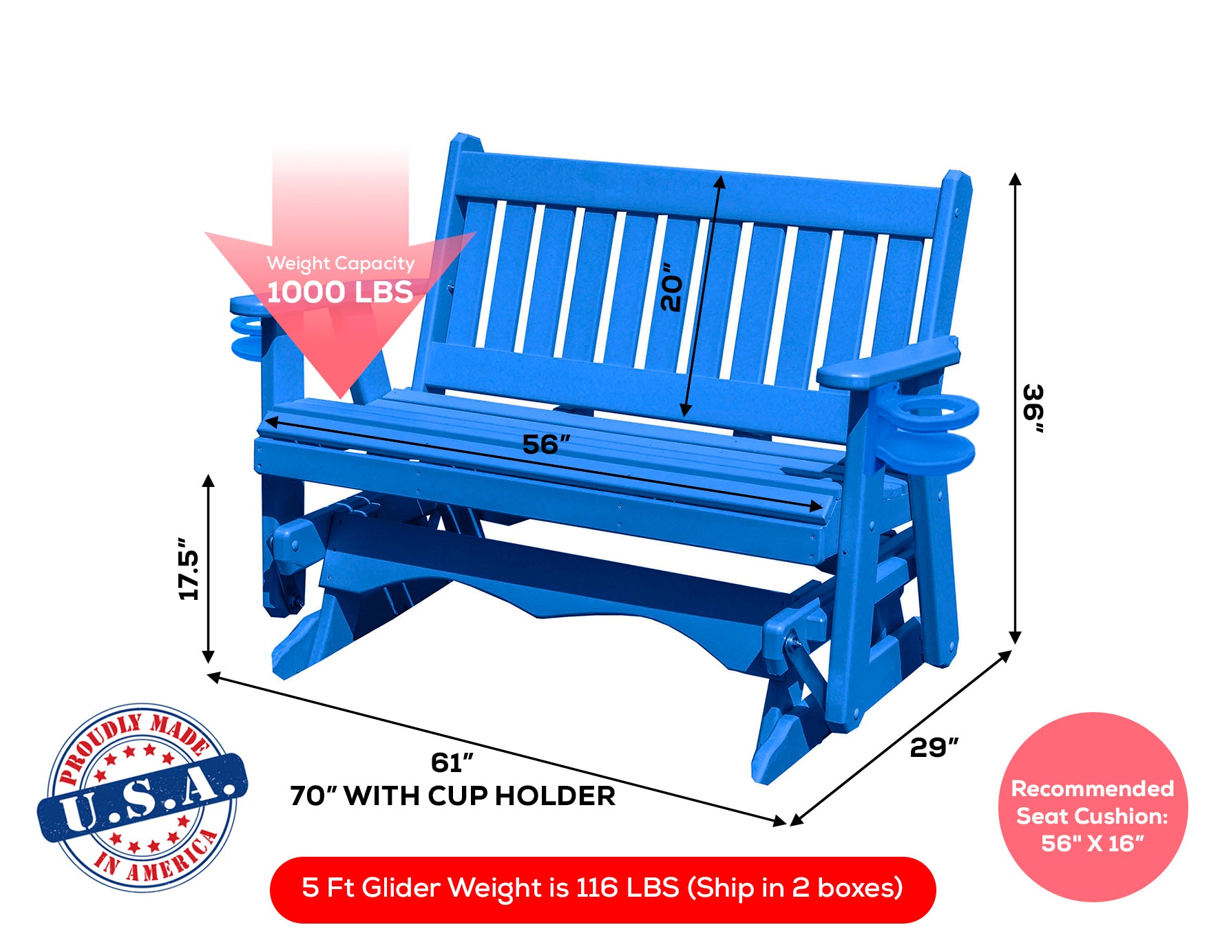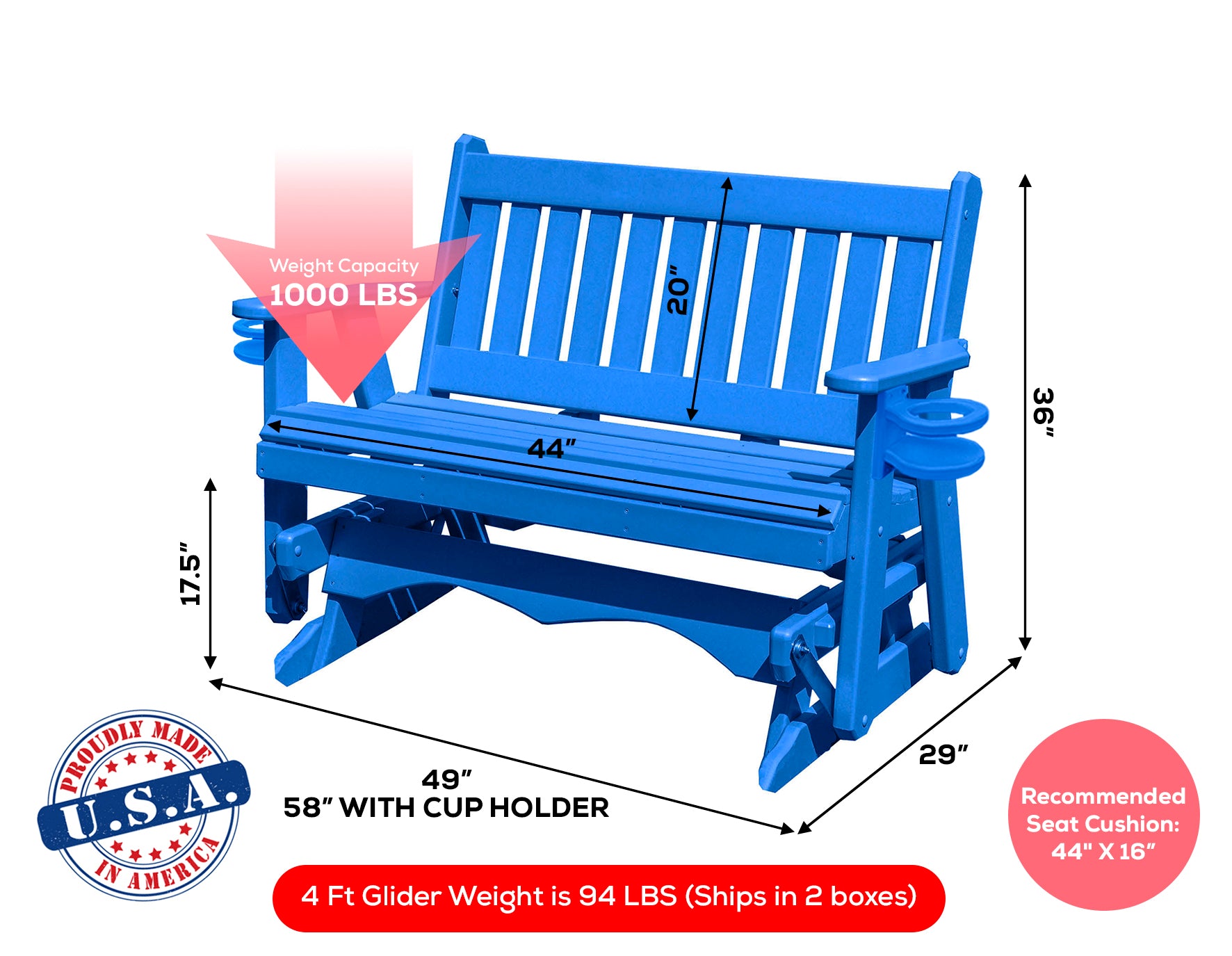 • Handcrafted Quality - Each glider is meticulously handcrafted by skilled Amish artisans in Pennsylvania, using time-honored techniques and high-quality materials. The result is a unique and heirloom-quality piece that will be cherished for generations.