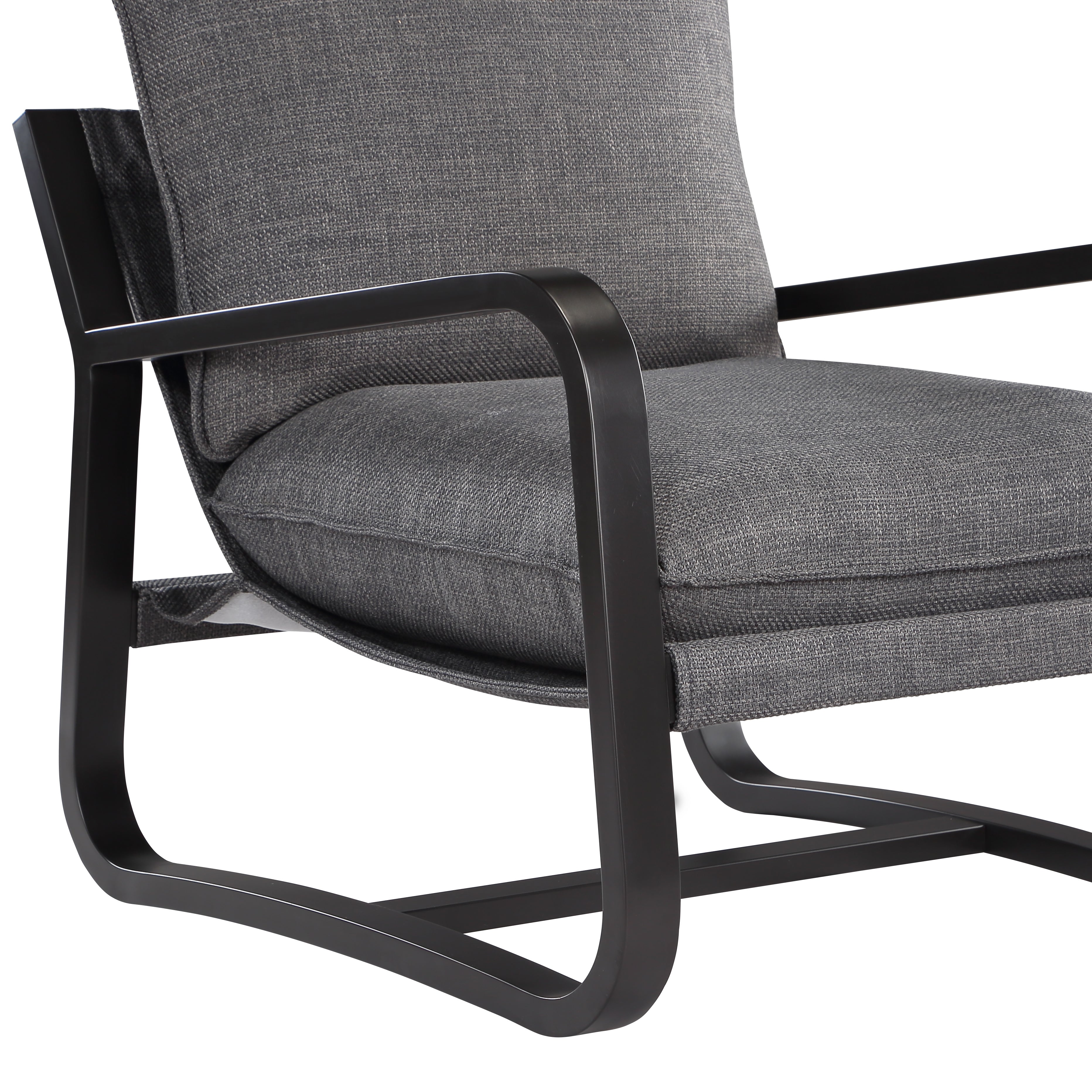 Introducing the Blaire Sling Chair, the perfect addition to your modern home. Upholstered in a stylish Charcoal fabric with a stunning Bronze frame, this chair embodies casual comfort and sophistication. Experience unparalleled relaxation in the super comfortable sling chair design, perfect for relaxing and reading your favorite book. The Bronze powder coated metal frame is not only durable and scratch-resistant, but also rust-resistant ensuring that your chair will withstand the test of time