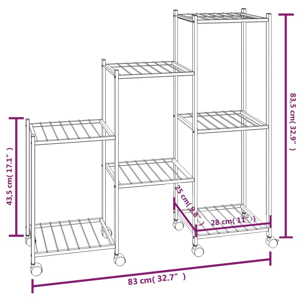 Flower Stand with Wheels 32.7"x9.8"x32.9" Black Iron
