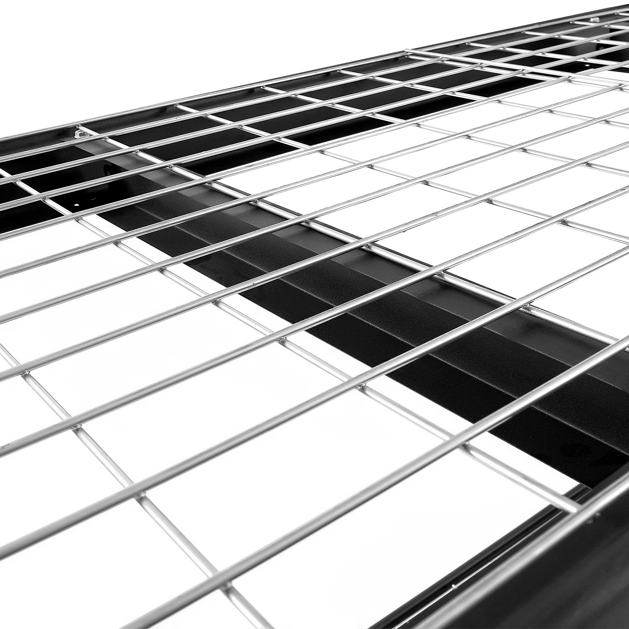 [6000LBS Capacity Metal Garage Storage Shelving Heavy Duty Shelving]Heavy duty garage storage shelving has thickened double metal legs. Made of high quality metal mesh, each tier of reinforced metal heavy duty shelves has 3 large ribs underneath, which can hold up to 2000LBS, with a total capacity of 6000LBS, which makes the heavy-duty industrial garage storage shelves more stable and stronger than flimsy wood plank storage shelves, and allows you to store more items.