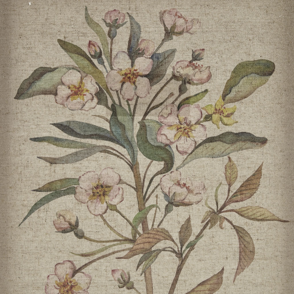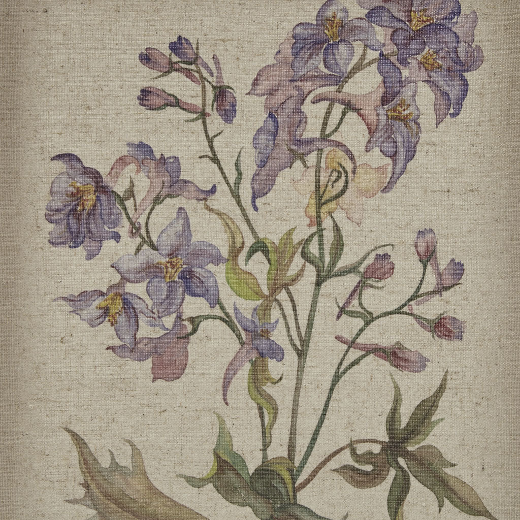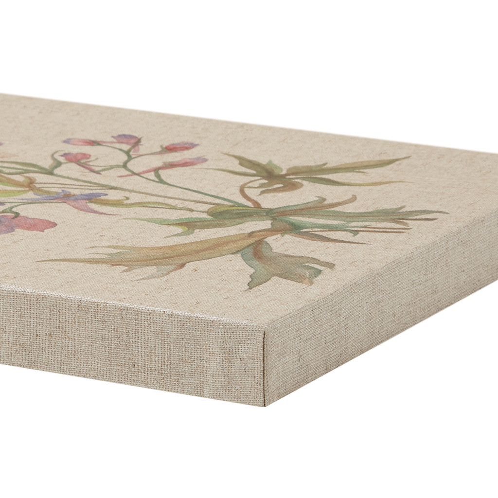 Vintage botanical illustration canvas wall decor set in soft pink, purple, and green colors