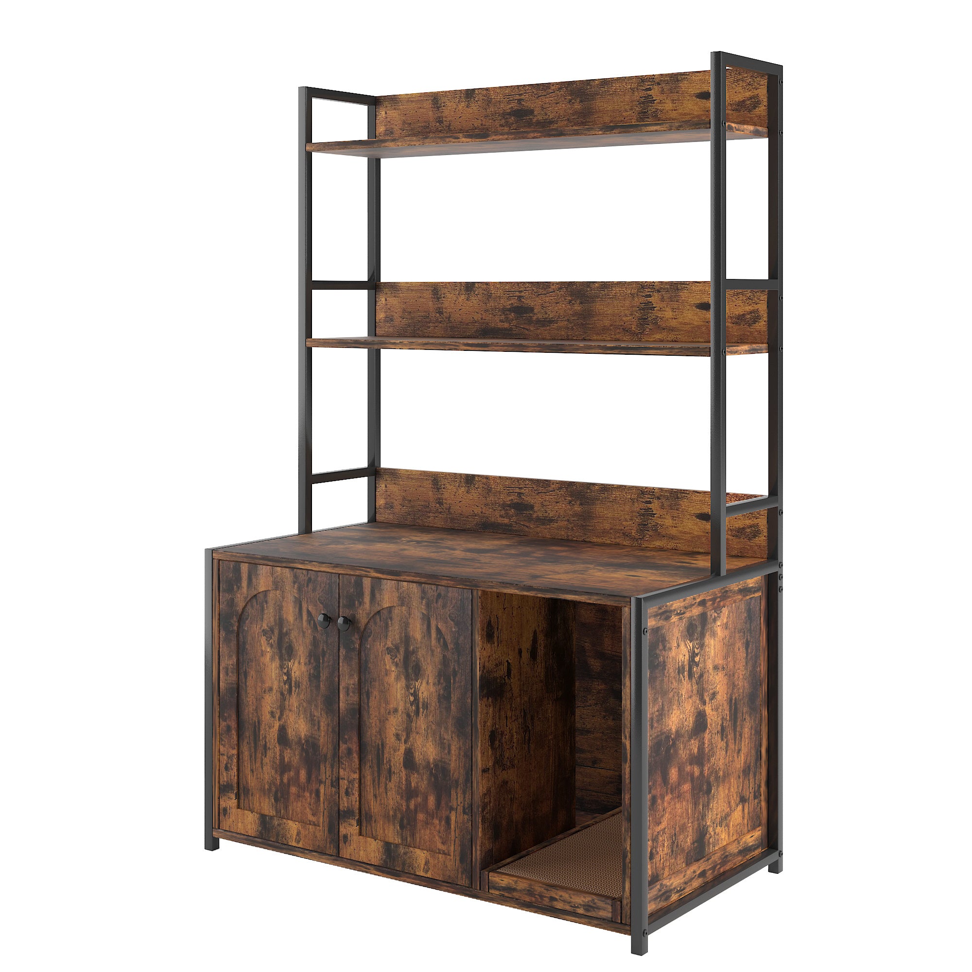 Best Gift For Cat and You: This cat house with storage is not only a hidden litter box but also can serve as a bookshelf and storage cabinet for your living room, bedroom, bathroom, etc. Say goodbye to smell and mess, to keep your house neat and cozy. Comes with a 3-tier storage rack to store magazines, cat foods, toys, scoops, or other pet supplies. Besides, each shelf has baffle to stop things falling down.