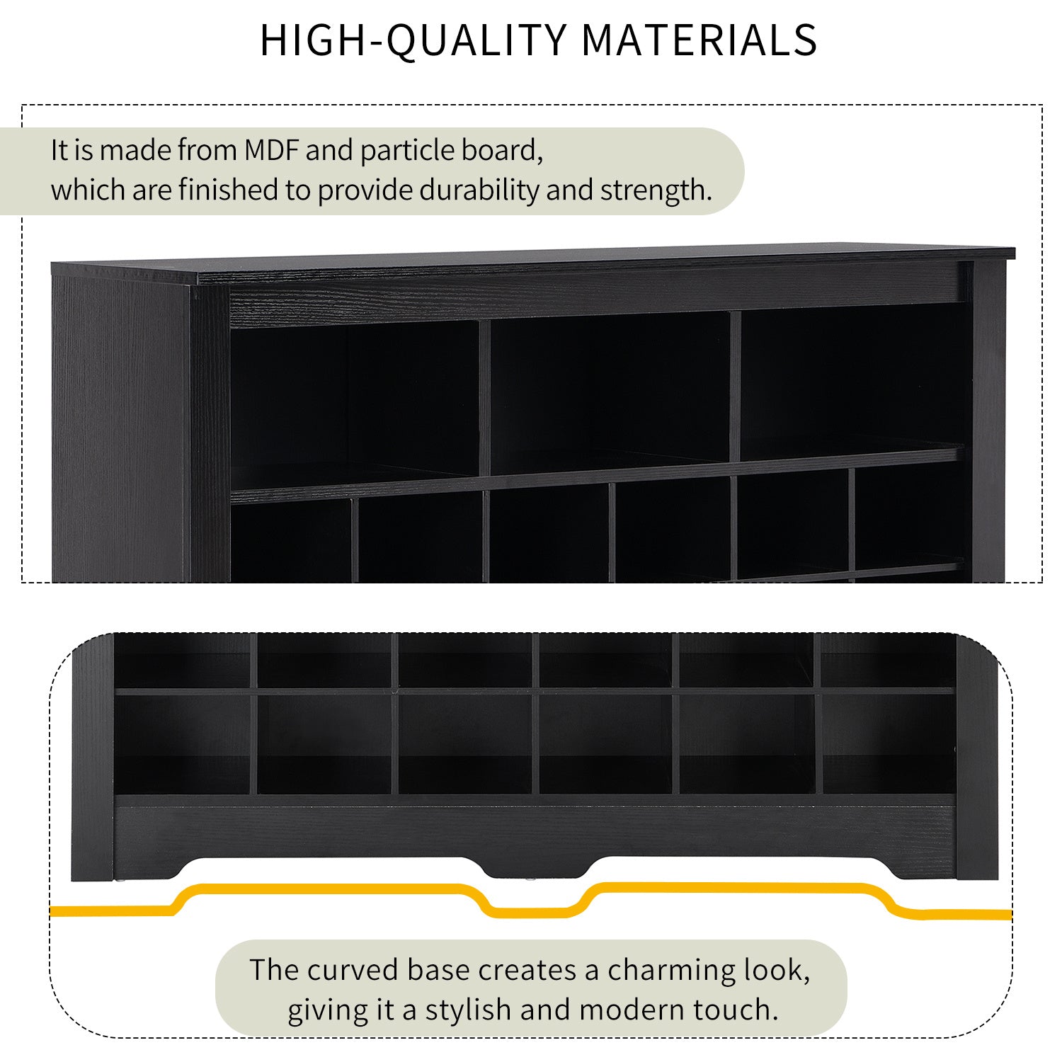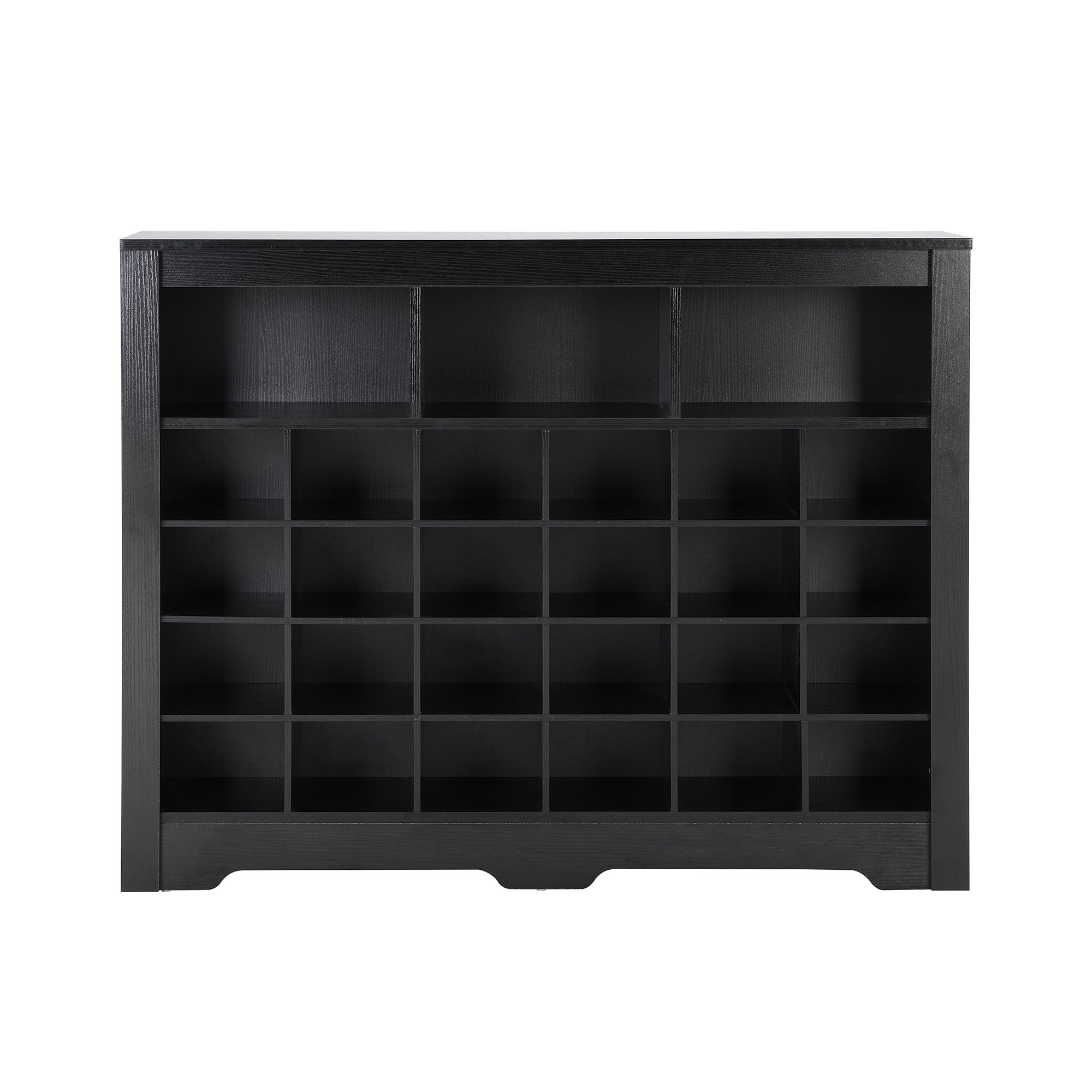The cabinet is divided into 24 small cubbies, each designed to hold a single pair of shoes, ensuring that your shoes are neatly organized and easily accessible. The upper 3 sections provides additional space for larger items such as boots or other items.