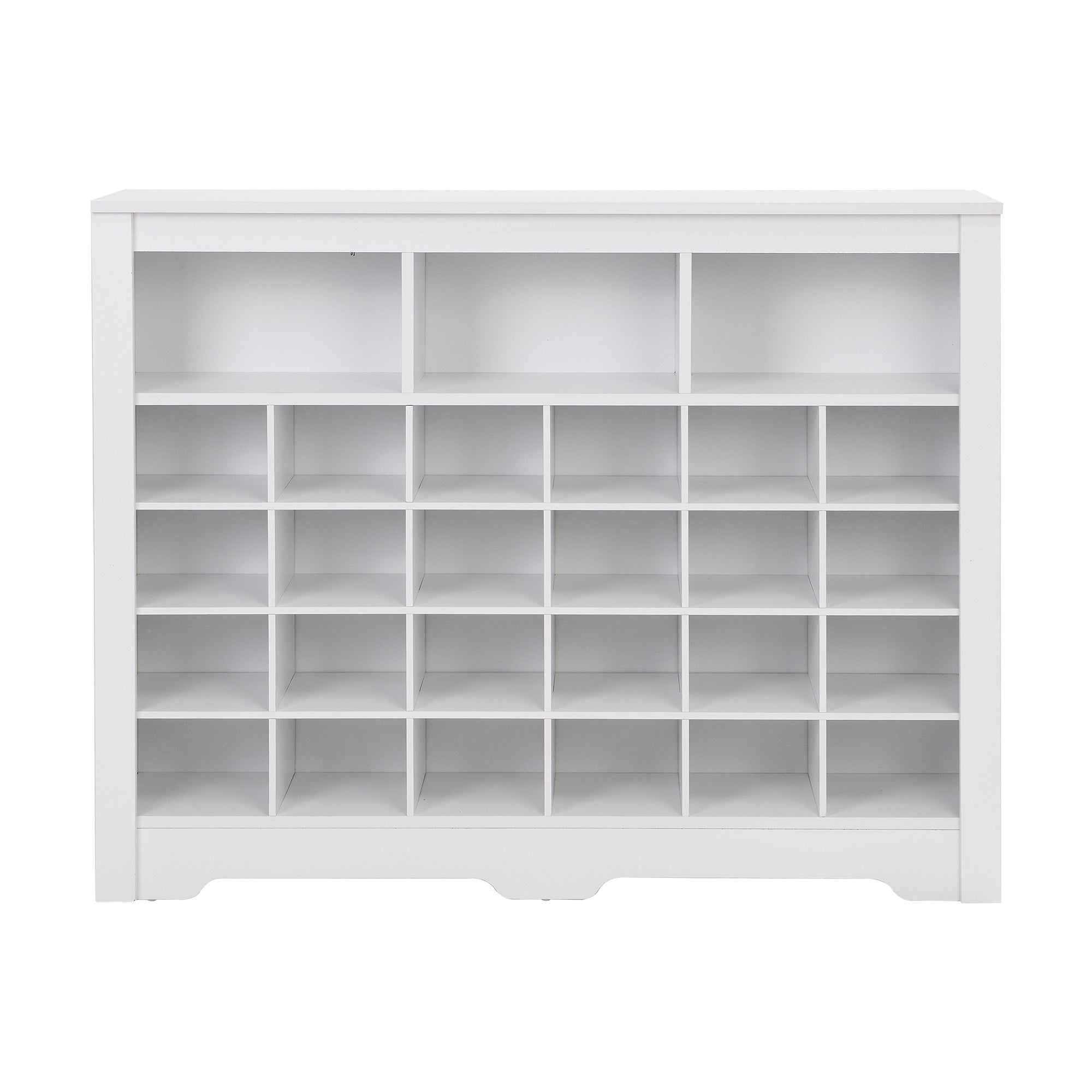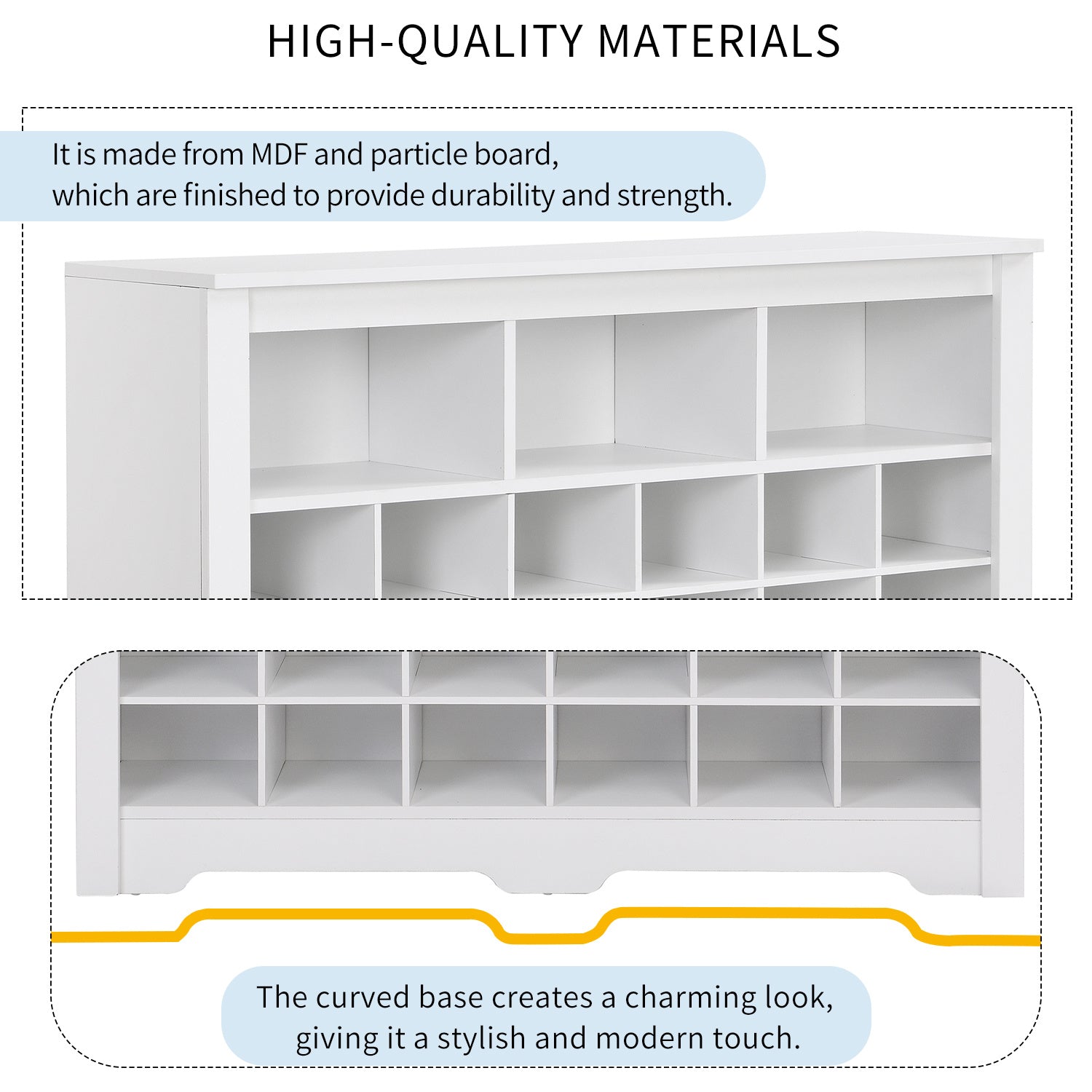 The cabinet is divided into 24 small cubbies, each designed to hold a single pair of shoes, ensuring that your shoes are neatly organized and easily accessible. The upper 3 sections provides additional space for larger items such as boots or other items.