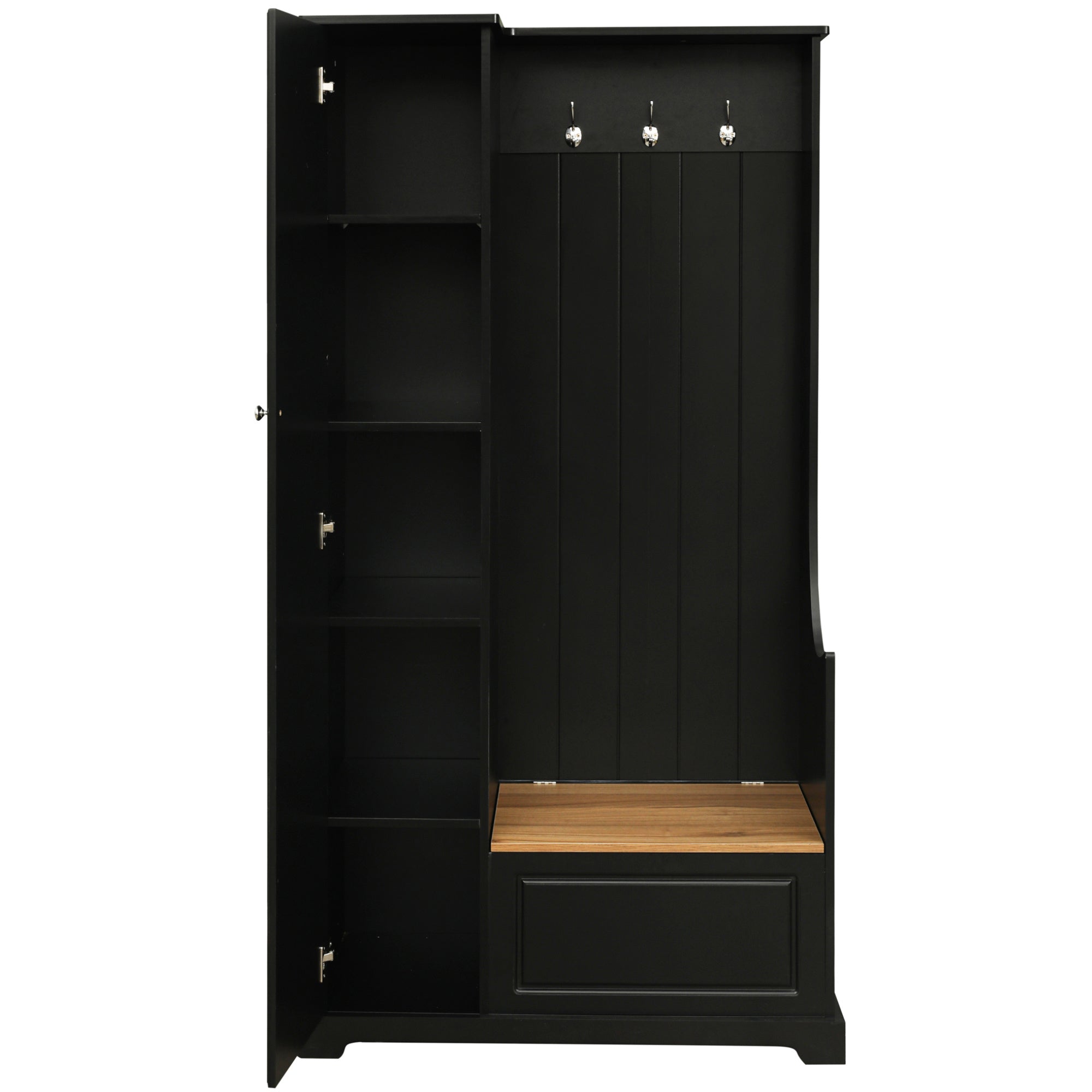 It provides a variety of functions that make it an essential furniture for your home. Flip-up bench provides extra storage for seasonal gear while the 3 hooks upper side can hang coats and bags.