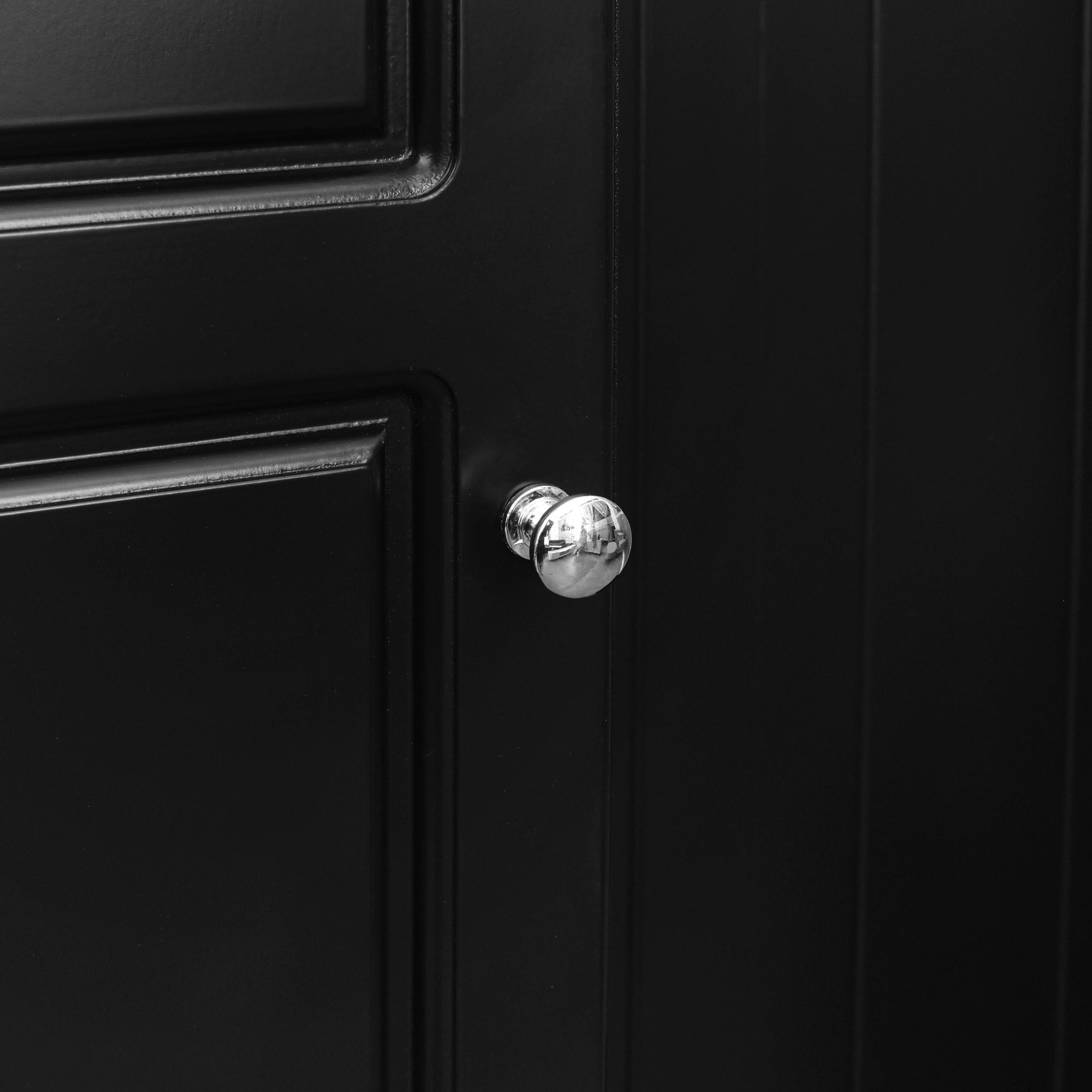 The tall cabinet boasts of two adjustable shelves that you can customize to suit your storage needs. You can simply move the first and third shelves to the desired height.