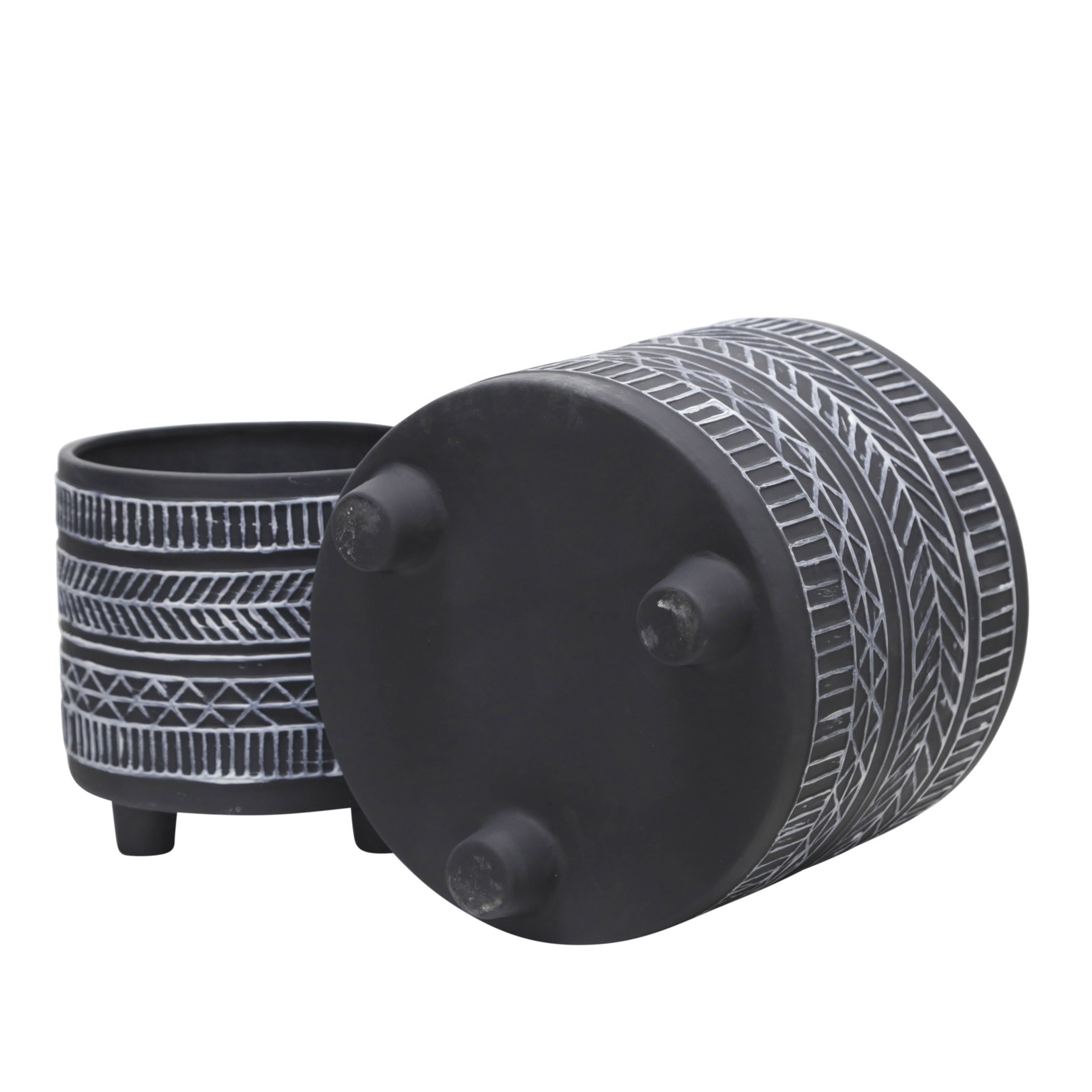 This stunning set of planters features a beautiful tribal inspired design. A white pattern that perfectly contrasts with the black matte finish of the planter. A modern way to display your favorite natural or faux plants.Sagebrook Home has been formed from a love of design, a commitment to service and a dedication to quality. They create and import fashion forward items in the most popular design styles. Backed with years of experience in the textile field, They are now providing a complete Home decor story. the combination of wall decor, furniture, lighting and Home accessories are all coordinated with textiles to provide a complete Home look. Sagebrook Home is committed to providing the best Home decor and accent pieces at value prices.