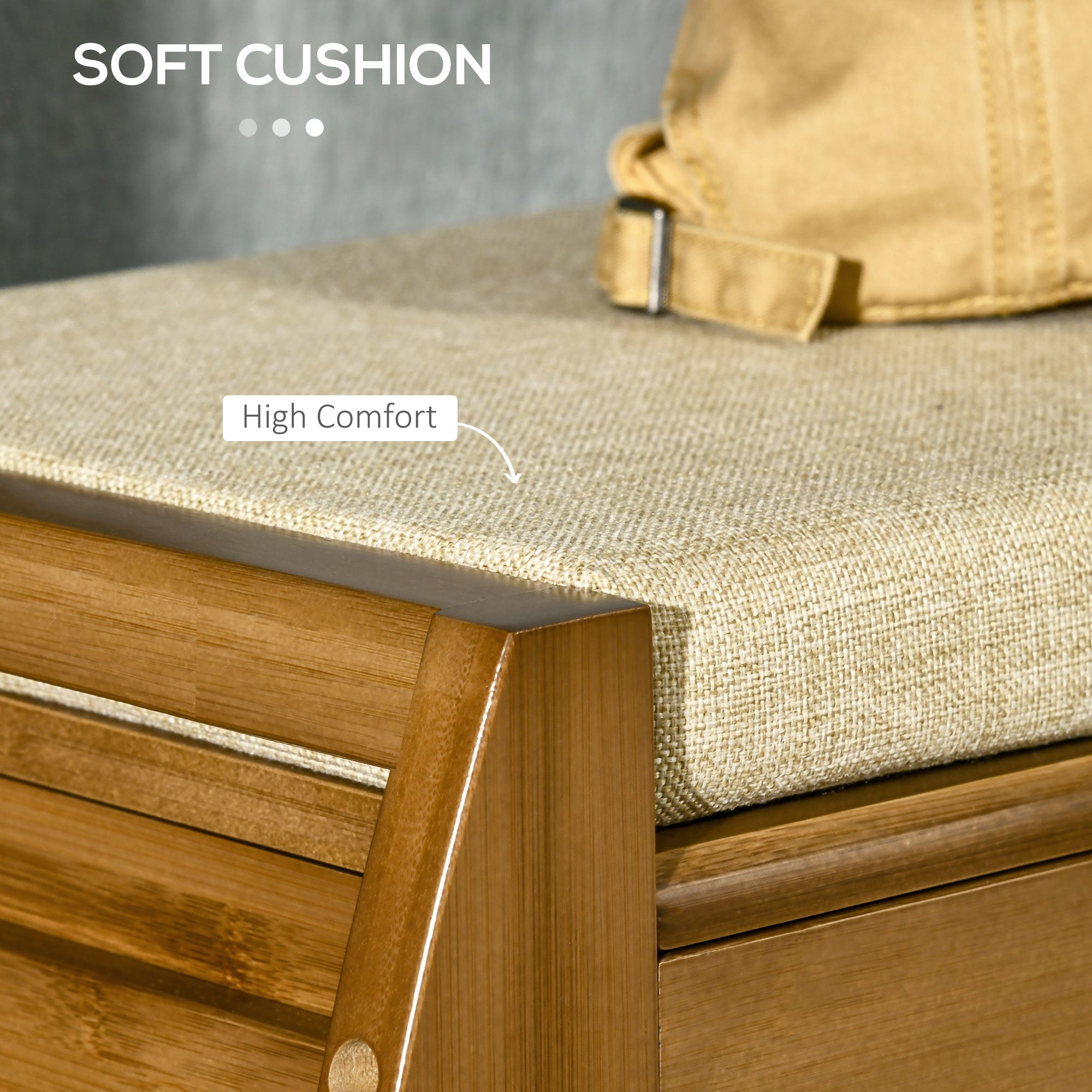 Comfort Seat: Featuring a thick padded cushion wrapped in breathable linen fabric, the entryway shoe organizer offers a comfortable sitting experience.