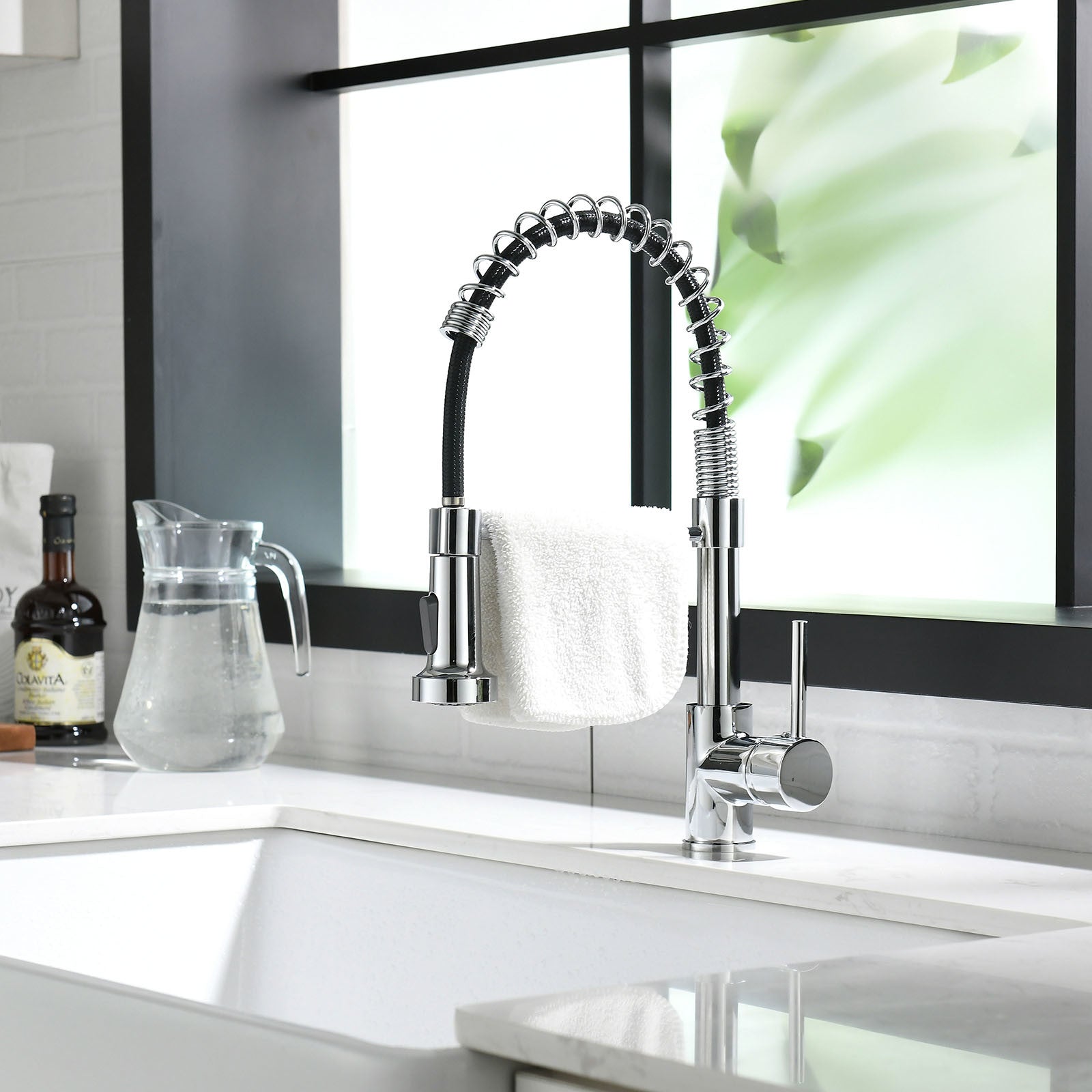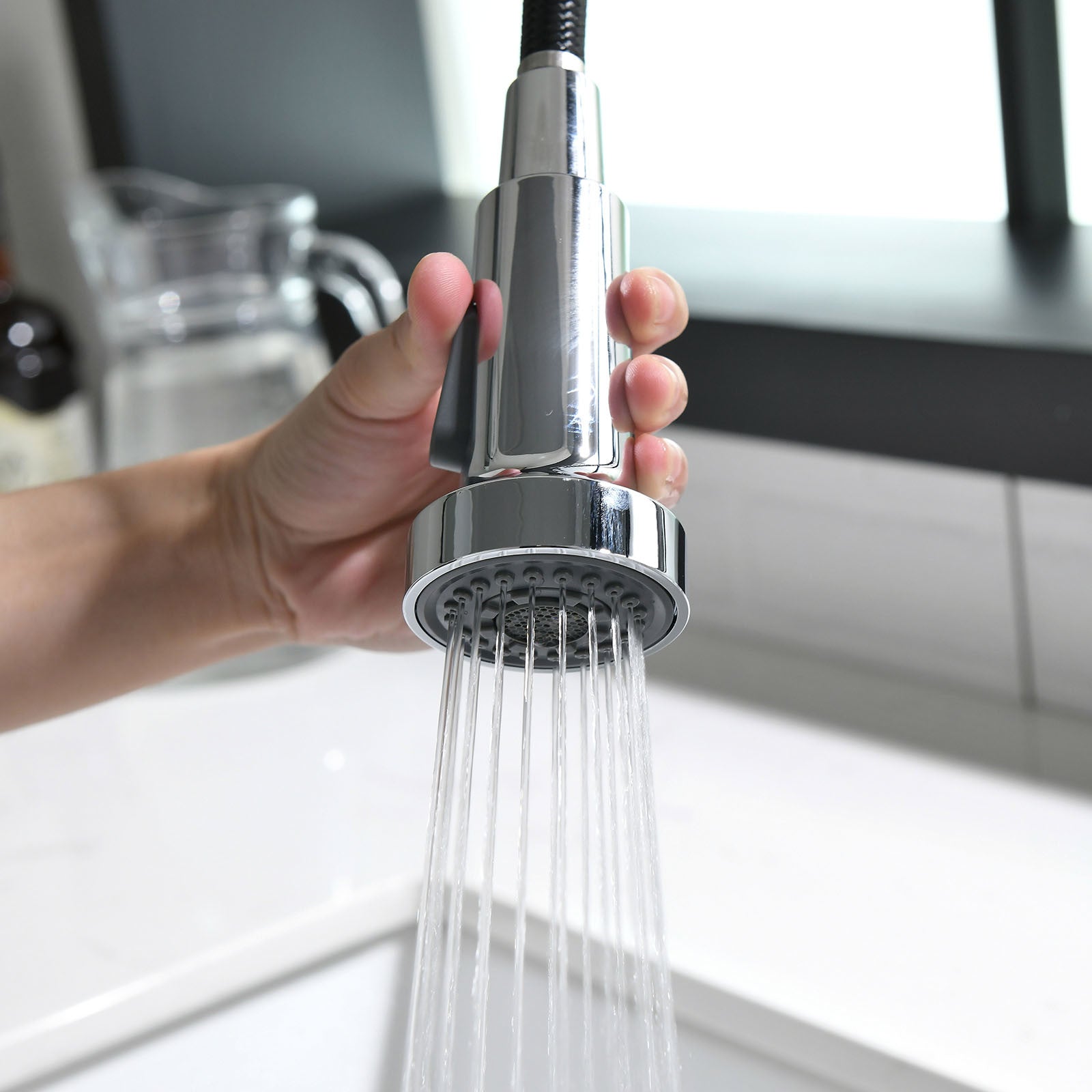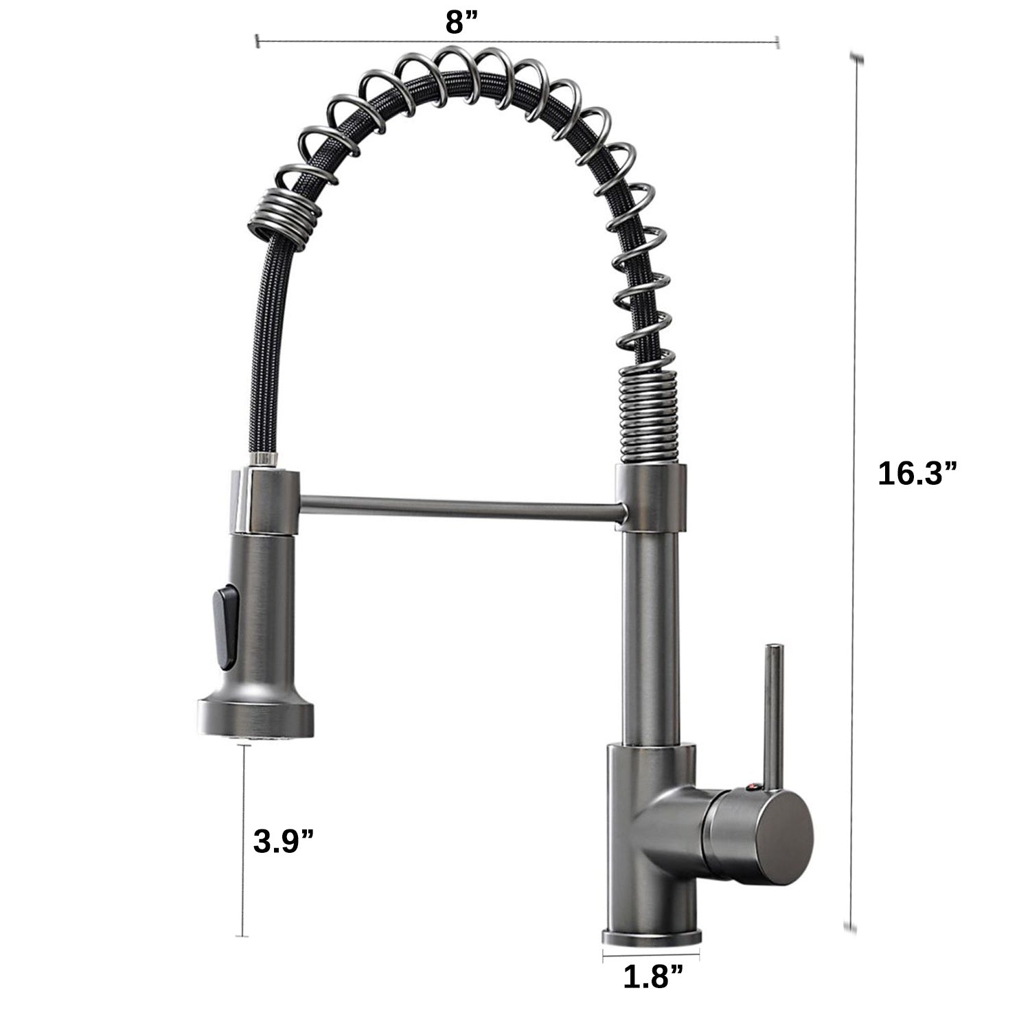 Update your kitchen by adding this stylish yet durable finished faucet with premium stainless steel construction for durability and longer life. This faucet features a pull down spray head for aerated flow or powerful spray or pause button.A smooth, high-arched curve makes the pull-down faucet sleek while both the faucet and are made of durable, long-lasting metal construction.