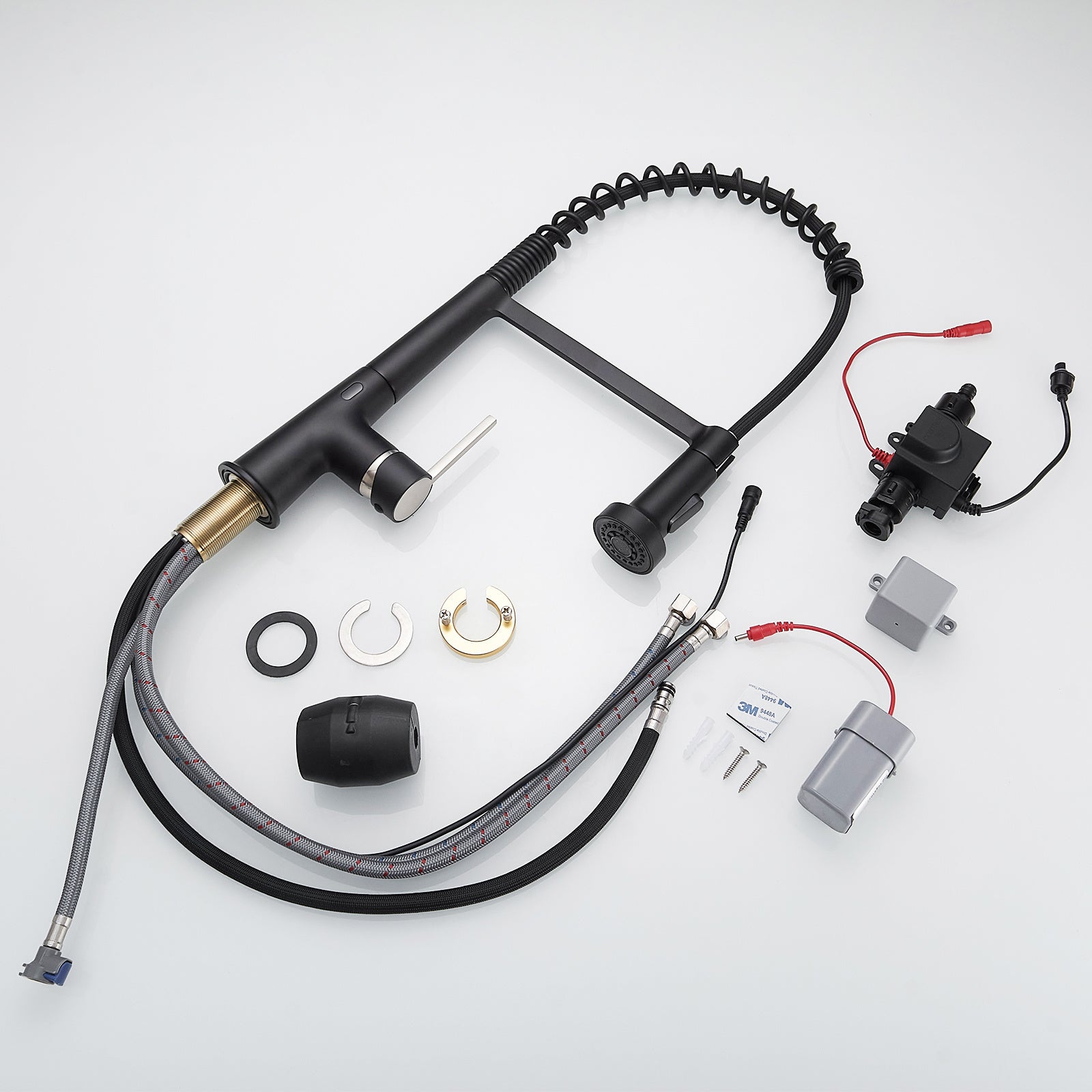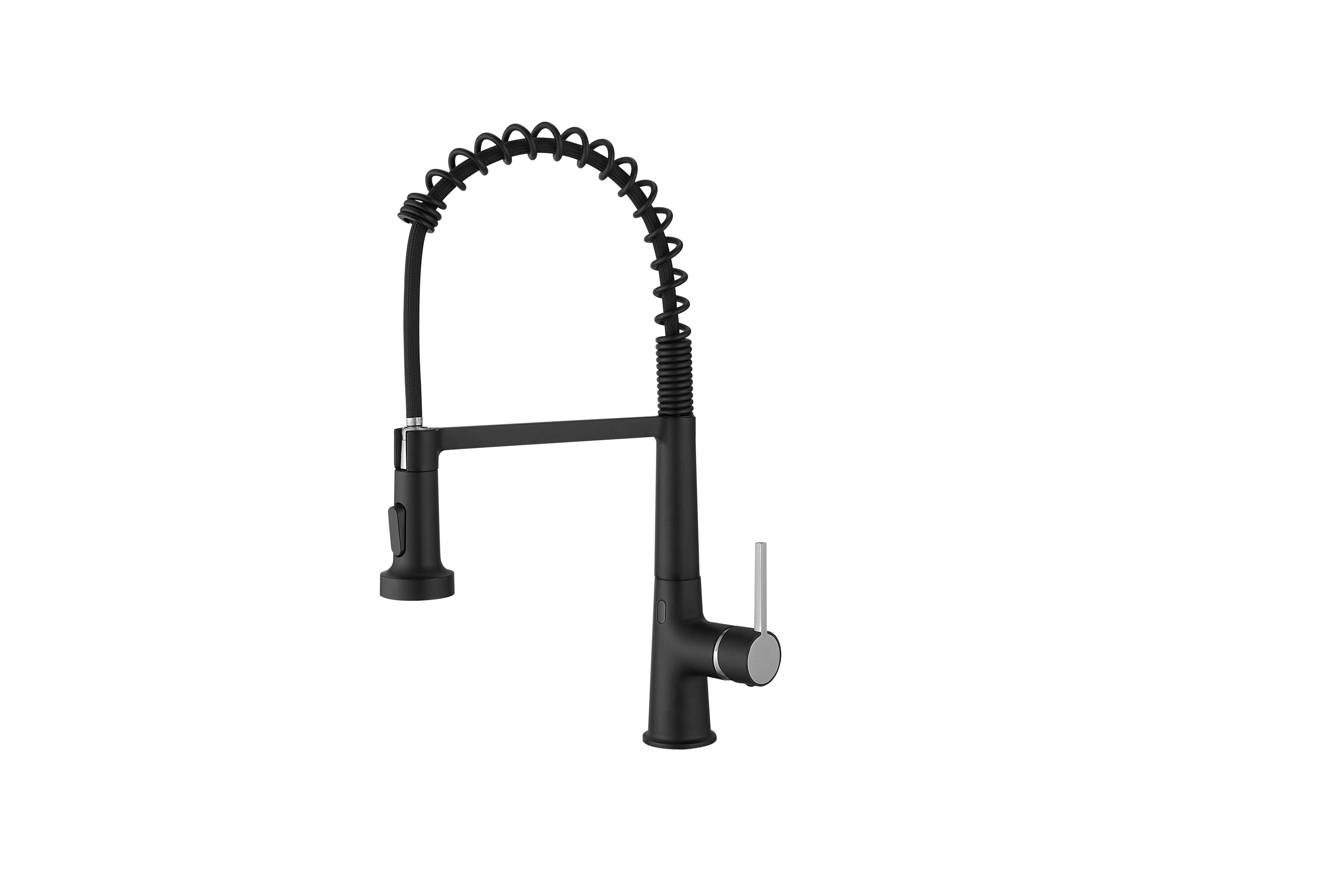 Single Handle Pull Down Sprayer Kitchen Faucet Commercial Spring Faucet with Touchless Sensor in Brushed + Black