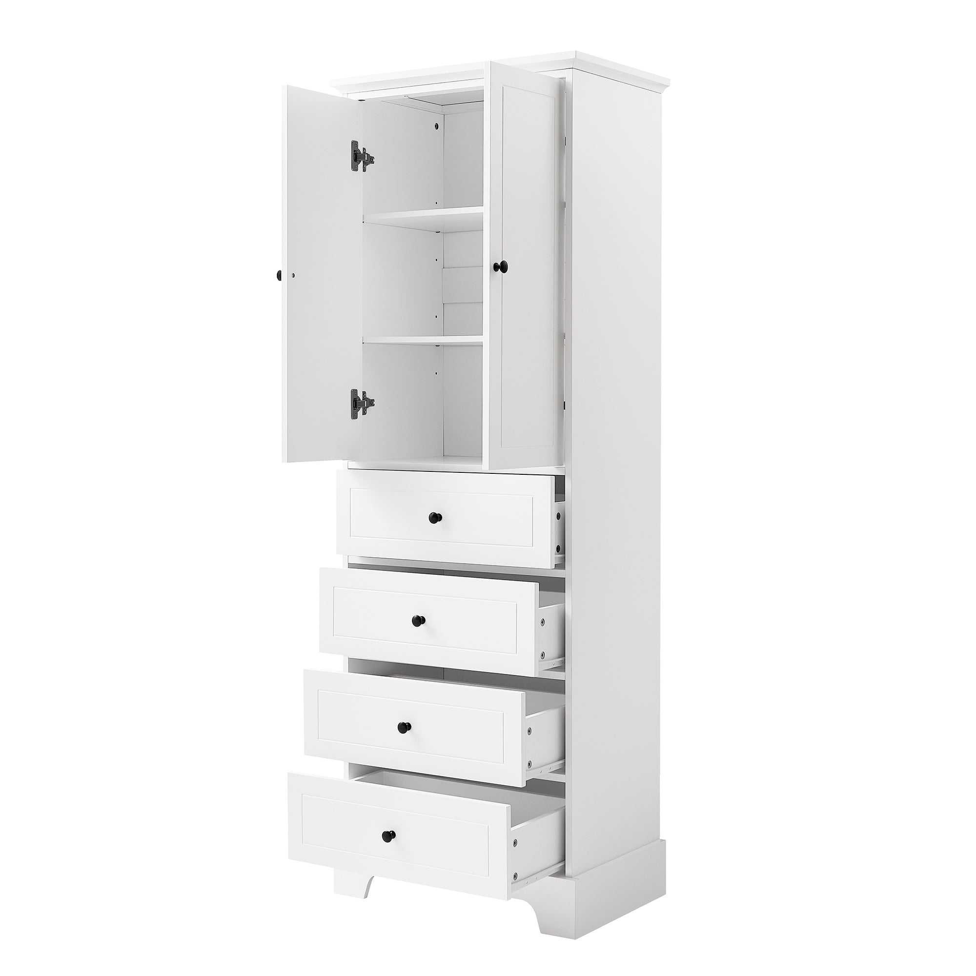 Flexible Storage Space: In addition to the four large drawers arranged vertically on the bottom of this cabinet, the two-door cabinet on the top also provides ample storage space. Moreover, the two plates inside the upper cabinet are adjustable to allow users to adjust the space according to their needs. This variety of flexible designs can meet the different requirements of daily life.
