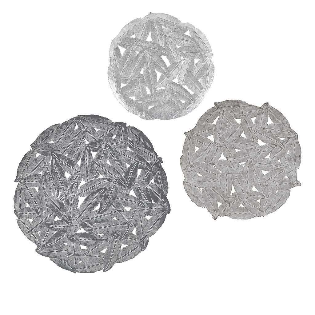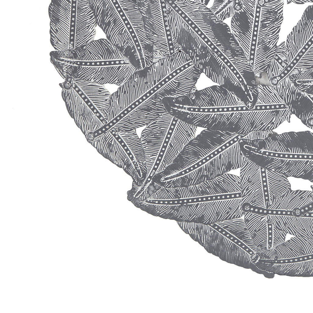 Line your walls with our Madison Park Textured Feather 3-piece Metal Disc Wall Decor Set. Painted in beautiful grey and silver hued iron finishes, this wall decor set offers soft neutral and metallic touches to any room. The feather cutout design is made of a 100% metal material and features attached hook rings on each piece to easily mount on your wall. Available in a set of three, this alternative metal wall decor can be hung together to bring life to any bare wall or hang separately for a little pop throughout your room or home.